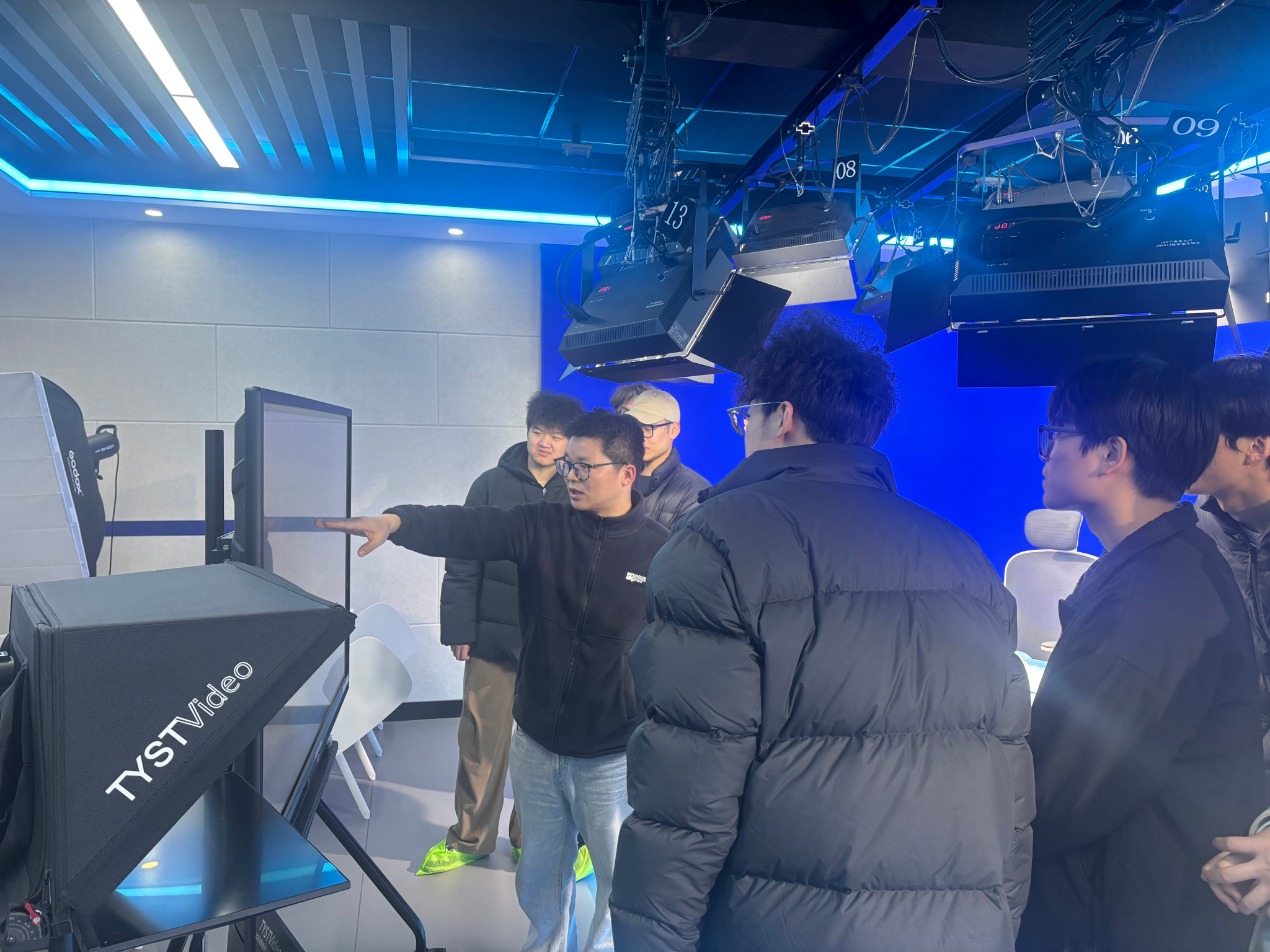 培训现场,张建涛老师紧扣行业前沿与岗位需求,围绕演播室专业设备操作、网络直播流程规范、镜头表达技巧、多机位协同调度等核心内容展开系统讲解。在实操环节,张老师采取“演示—练习—点评”的教学模式,指导学生分组进行直播场景模拟、设备调试、脚本策划与现场播报训练,针对学生操作中存在的问题逐一指导、及时反馈,帮助学生快速掌握新媒体岗位核心技能。