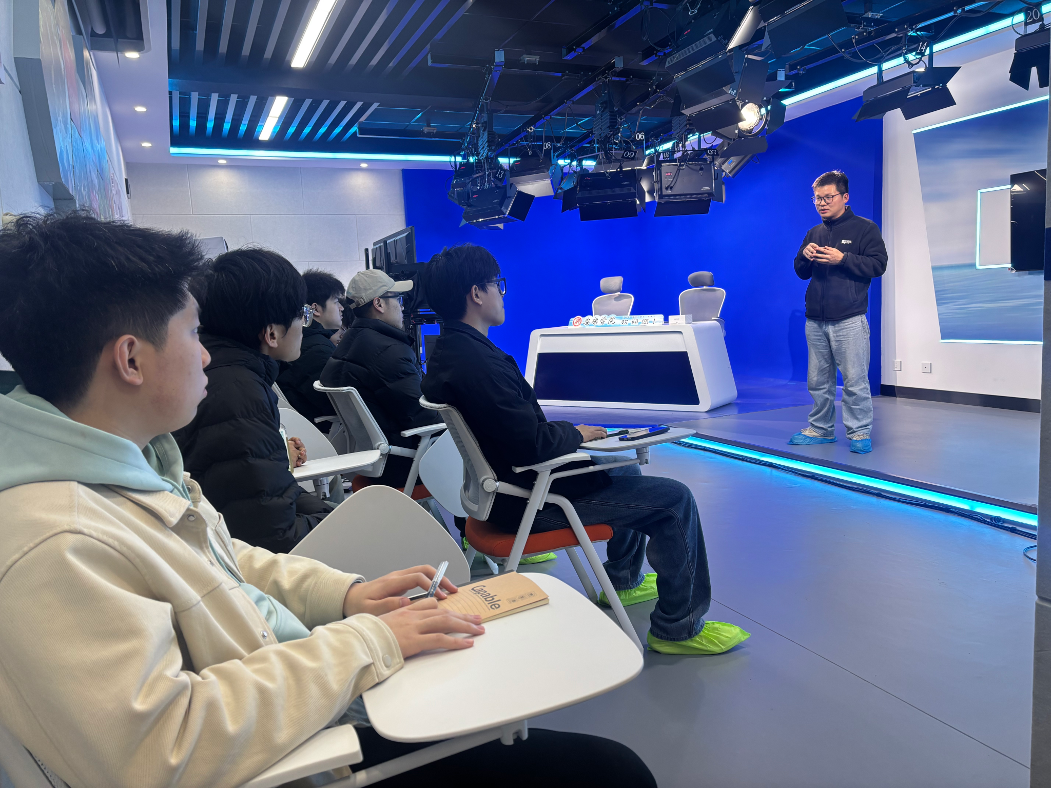 为进一步提升网络与新媒体专业毕业生就业核心竞争力,精准对接行业用人需求,近日,欧冠联赛官网组织网络与新媒体系专任教师张建涛在2503演播室为毕业班学生开展新媒体专业技能培训,以“理论+实操”相结合的方式为学子就业赋能。