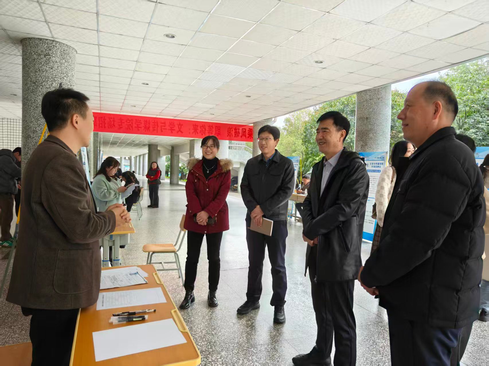 屈险峰副校长与招聘负责人亲切交谈,详细了解用人需求及招聘进展。他强调,要持续深化校企协同,精准把握行业动态与人才需求,进一步优化就业指导服务,帮助毕业生树立理性求职观,实现更充分、更高质量就业。