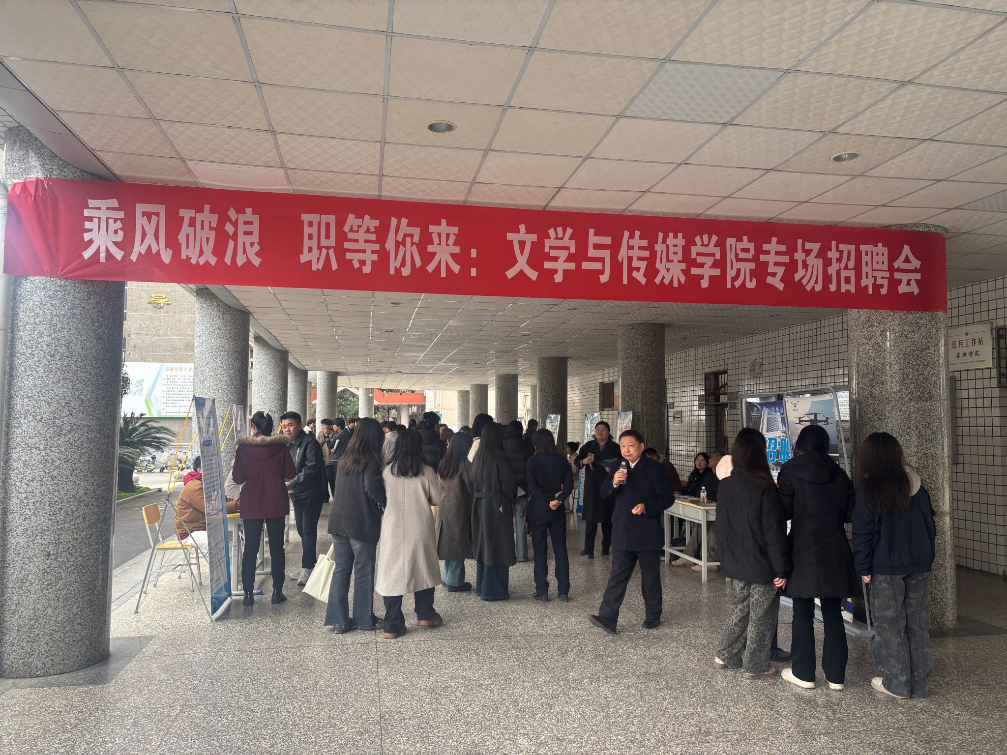 为深入贯彻落实学校就业工作部署,精准对接毕业生求职需求,3月19日下午,欧冠联赛官网联合学校就业指导中心在江南校区成功举办2026届毕业生专场招聘会。本次招聘会邀请10家安康本土优秀企业进校揽才,为毕业生搭建起高效便捷的供需对接平台。学校副校长屈险峰莅临现场指导工作,学生工作部部长芦伟陪同并与用人单位深入交流。