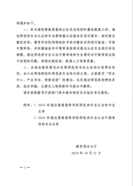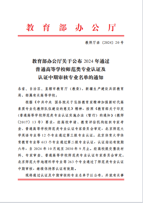 近日,教育部发布《关于公布2024年通过普通高等学校师范类专业认证及认证中期审核专业名单的通知》,欧冠联赛官网汉语言文学专业顺利通过教育部中学语文教育二级认证,认证有效期六年。