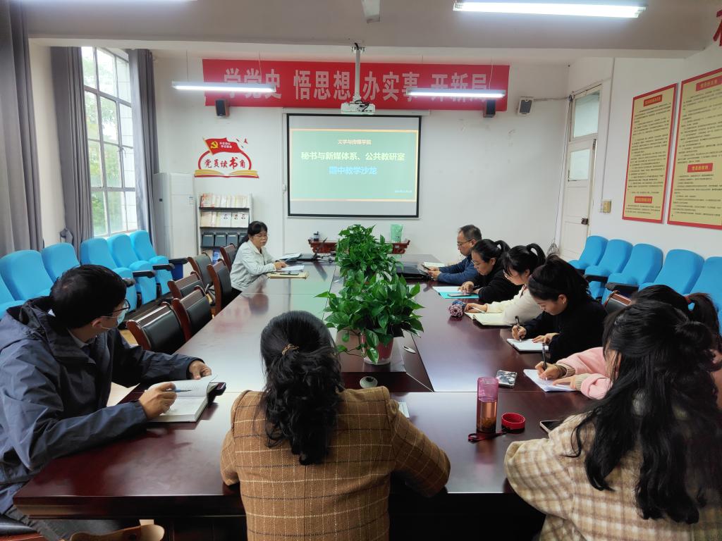 期中自查工作启动后,各系室迅速将学校、学院关于期中教学自查的要求传达给全体教师,要求每位教师根据自查工作要求做好自查工作,并针对存在的问题提出改进措施。在课堂教学质量检查环节,学院领导、教学督导深入课堂,重点检查指导了新进教师的教案编写、课堂授课情况,并及时反馈,根据汉语言文学专业师范专业认证“学生中心产出导向持续改进理念提出了指导意见。同时,学院积极组织教学研讨活动,总结半学期以来的教学经验与不足、探讨课程改革的途径。