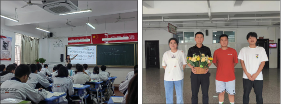 汉滨高级中学领导对本次活动高度重视,精心安排。根据提前划分好的小组,同学们有序进入班级,切身感受真实生动的高中语文课堂。本次课堂教学观摩以文言文教学为主,即使是同一篇课文的讲授,也能让同学们看到不同的教师风采,品味到不同课堂的语文味儿。下午最后一节课,同学们观摩了“防溺水安全教育”主题班会活动,大家纷纷感言受益匪浅。为感谢汉滨高级中学对欧冠官网教育见习活动的大力支持,见习学生代表给高一年级主任杨俊义献上祝福感谢的鲜花。