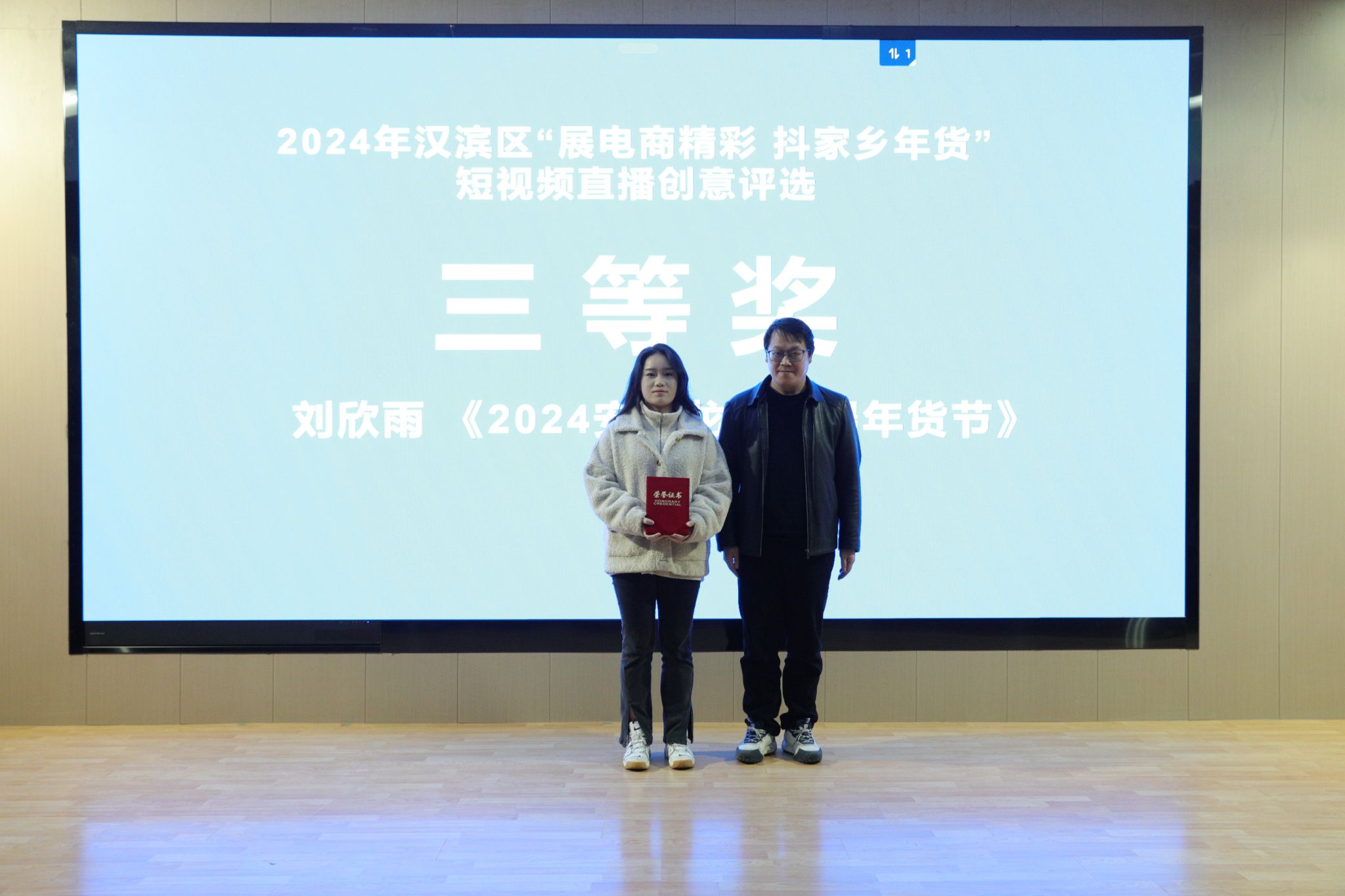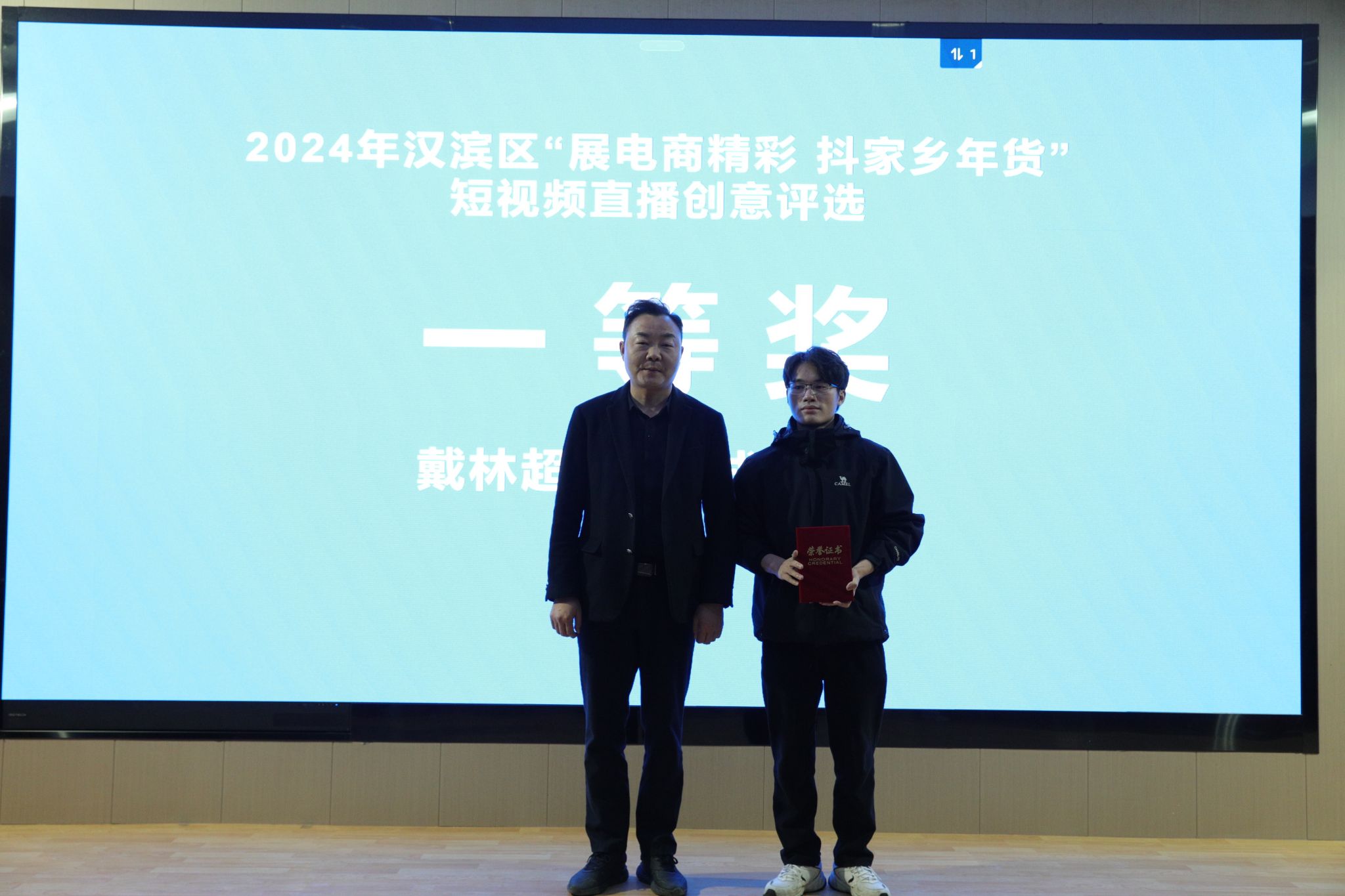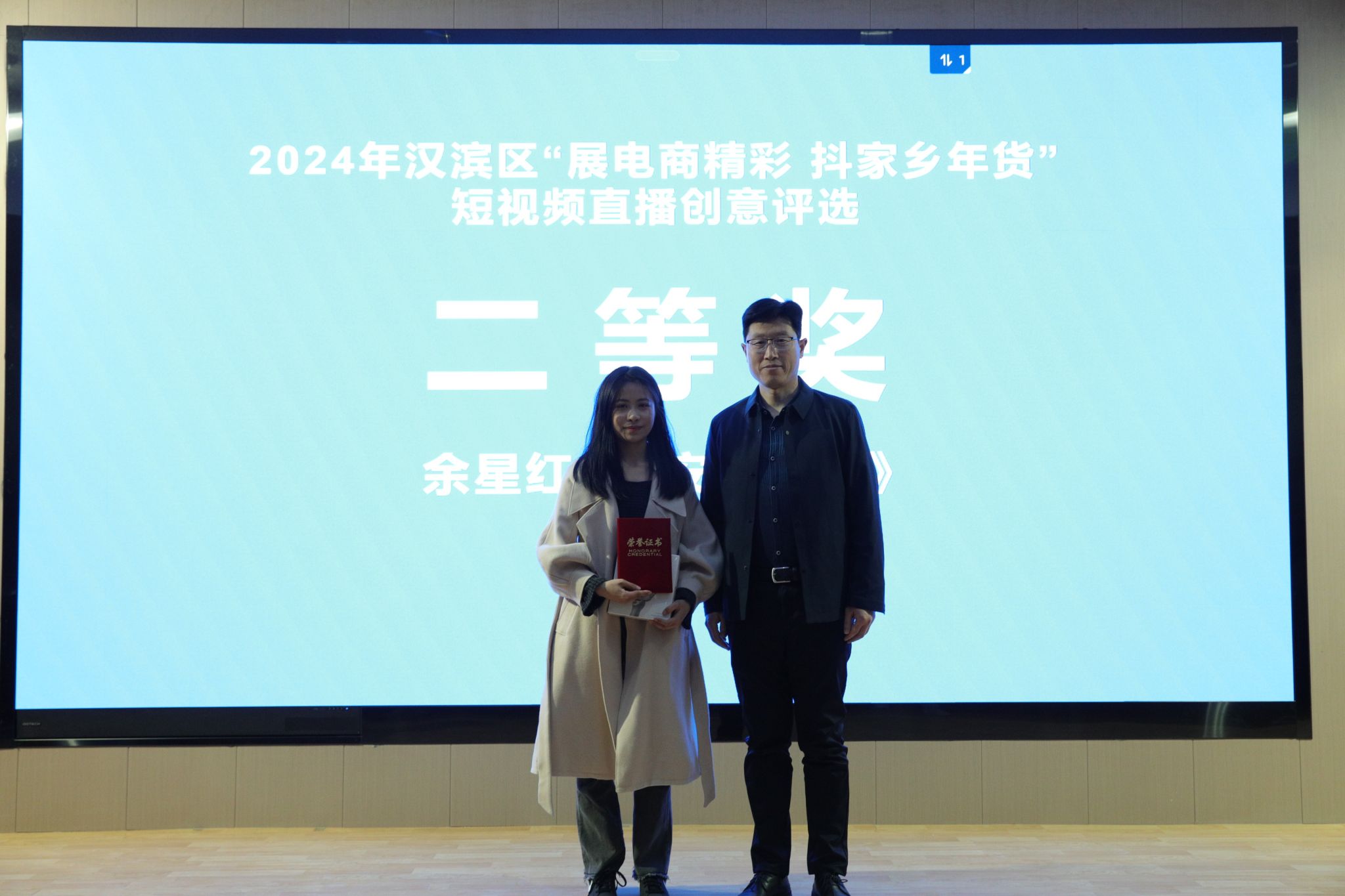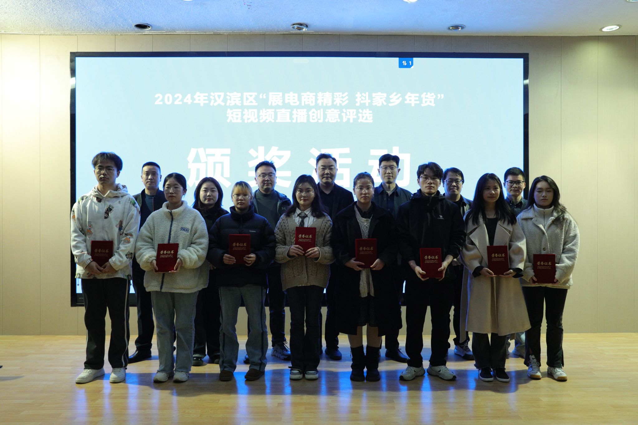 3月15日下午,欧冠官网与汉滨区电商中心联合举办的“展电商精彩,抖家乡年货”短视频竞赛在1605报告厅举行了大赛颁奖仪式。汉滨区电子商务服务中心主任李龙、汉滨区电子商务服务中心数字经济股股长张亮、安康市电子商务联合会负责人张铁汉、惟亚(上海)数字科技有限公司电商示范项目负责人李永瑶,欧冠联赛官网党总支书记芦伟、副院长朱云,秘书与新媒体系主任张建涛出席了颁奖活动。