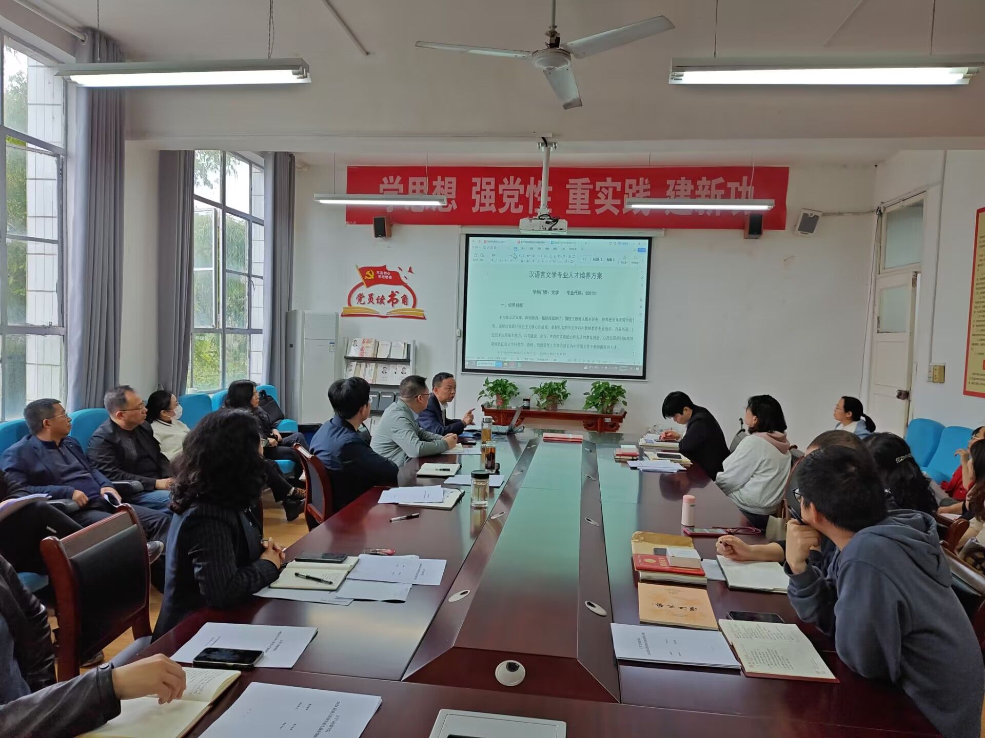 培训会上,杨运庚首先结合OBE理念深入阐述了“学生中心、产出导向、持续改进”教育教学理念的内涵,解读了专业人才培养方案设计的基本过程及依据,要求全体授课教师在进行课程教学和课程大纲修订前,重点阅读、深入理解专业人才培养方案,要把专业人才培养方案作为课堂教学和课程大纲修订的基本遵循和根本指导性文献;然后以《汉语言文学专业人才培养方案(2023级)》为例解读了专业人才培养目标、毕业要求和课程目标之间的相互支撑和制约关系;最后以《语文学科教学论》课程教学大纲为例阐述了如何围绕毕业要求设置课程目标,要求老师在修订课程教学大纲时,应充分理解本课程在人才培养中的地位和作用,结合毕业要求科学合理地设置课程目标,精心设置课程实施环节及各章节课程教学目标。