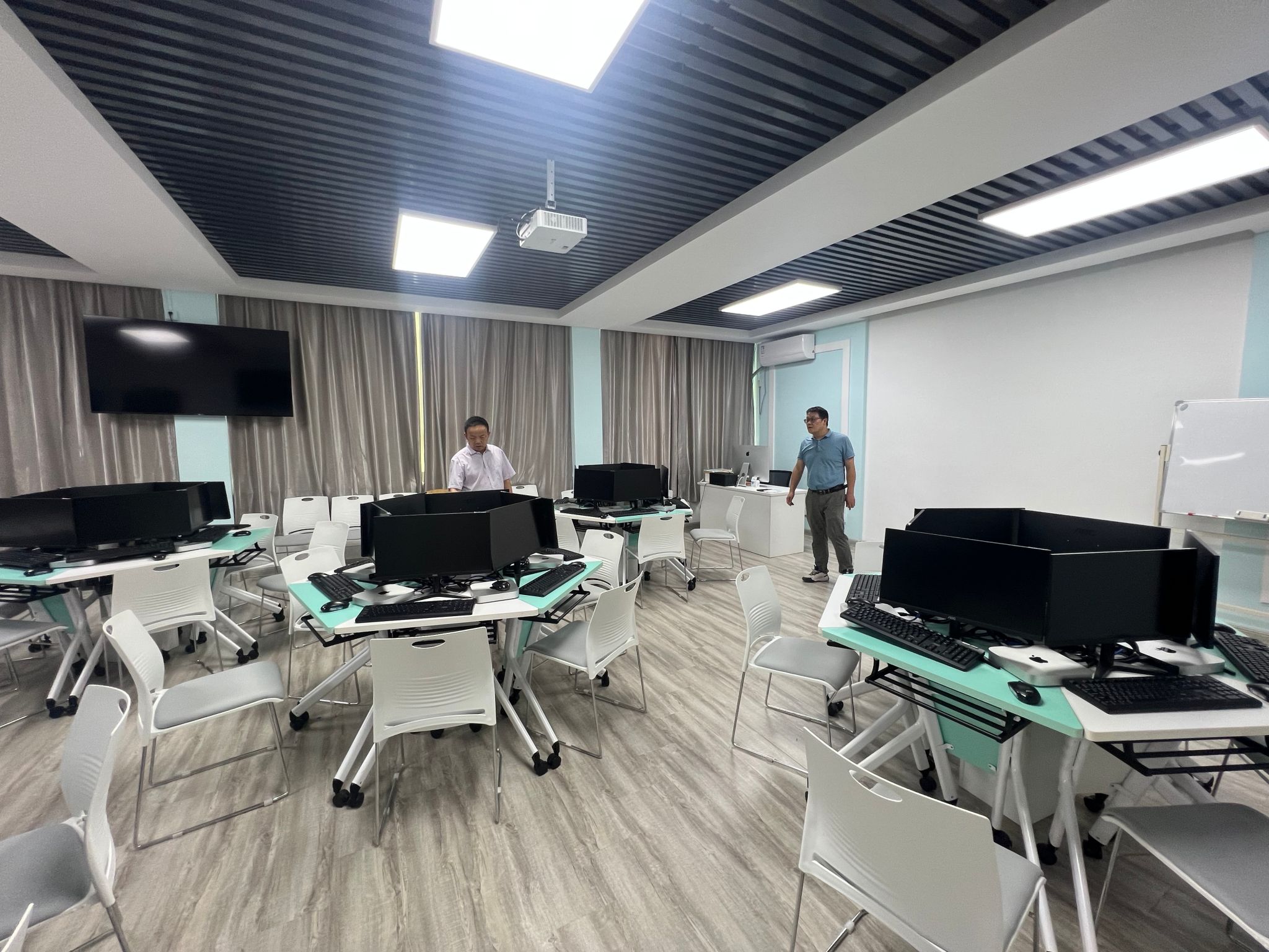 在检查过程中,学院领导详细查看了计算机、服务器等设备的电源线路连接和运行情况,以及门窗的关闭和室内卫生状况,特别关注了电缆的老化和设备负载问题,强调了安全用电的重要性,要求实训室管理员及时更换存在隐患的线路,确保机房用电安全。