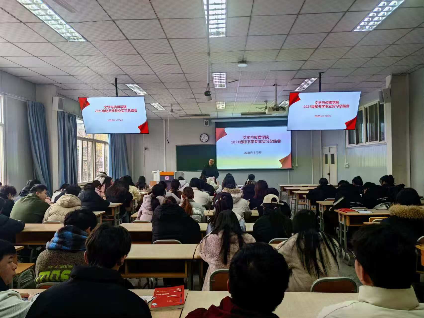2025年1月5日,欧冠联赛官网在1026教室召开秘书学专业实习总结会,副院长朱云、实习带队教师胡少山以及2021级、2022级秘书学专业学生参会,会议由实习生李欣窈主持。