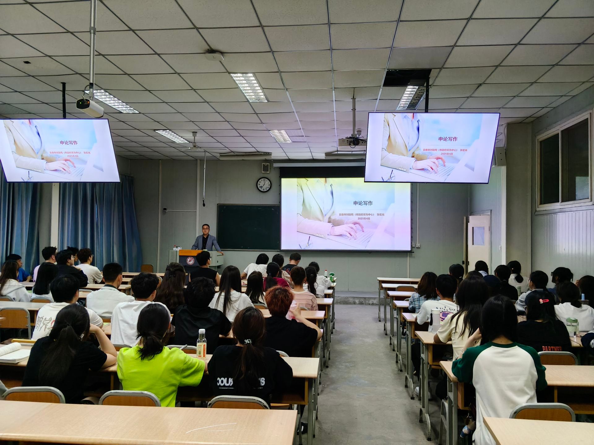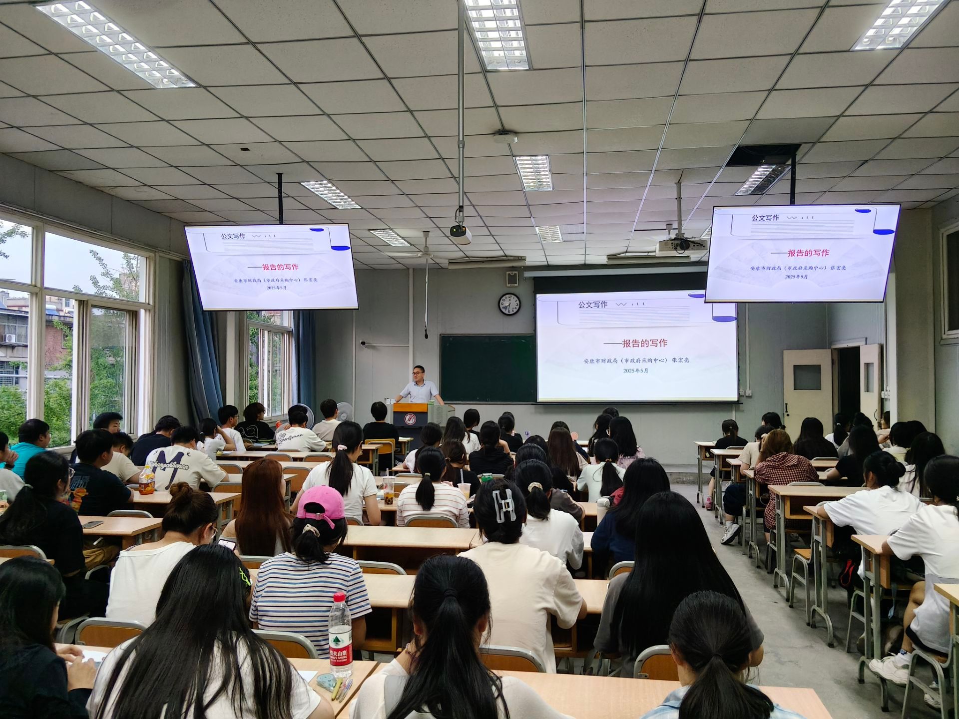 按照《应用文写作》“双师”课程教学计划,欧冠联赛官网于4月9日、4月18日、5月20日、6月3日邀请行业专家安康市政府采购中心张宏亮,为汉语言文学2024级1、2、5班学生分四次讲授了请示、批复、报告、函、纪要等公文和申论写作的技巧,校内任课教师胡少山随堂听课。