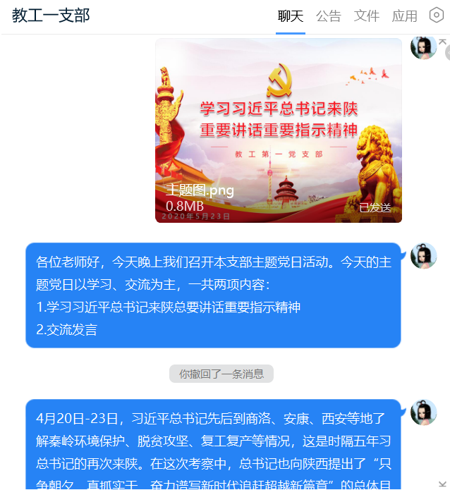 5月23日,欧冠联赛官网教工一支部依托支部QQ群开展了“学习习近平总书记来陕重要讲话重要指示精神”线上主题党日活动。活动由教工一支部书记李婷主持,本支部全体党员参加学习和讨论。