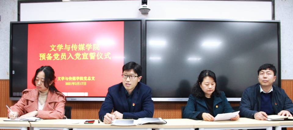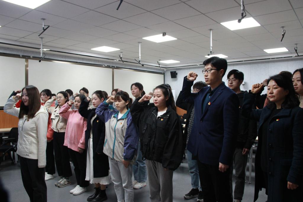 在庆祝中国共产党成立100周年之际,为了引领青年大学生党员学党史,筑牢为共产主义伟大理想而奋斗的决心,担当中华民族伟大复兴的时代重任,3月17日下午,欧冠联赛官网党总支在4301室举办了预备党员宣誓仪式,党总支书记芦伟以“红船映初心”为题给学生党员讲授党史学习教育党课。学院党总支副书记杨海蓉、学工办主任薛涛、团总支书记彭潇以及学生党员参加了学习活动。活动由薛涛主持。