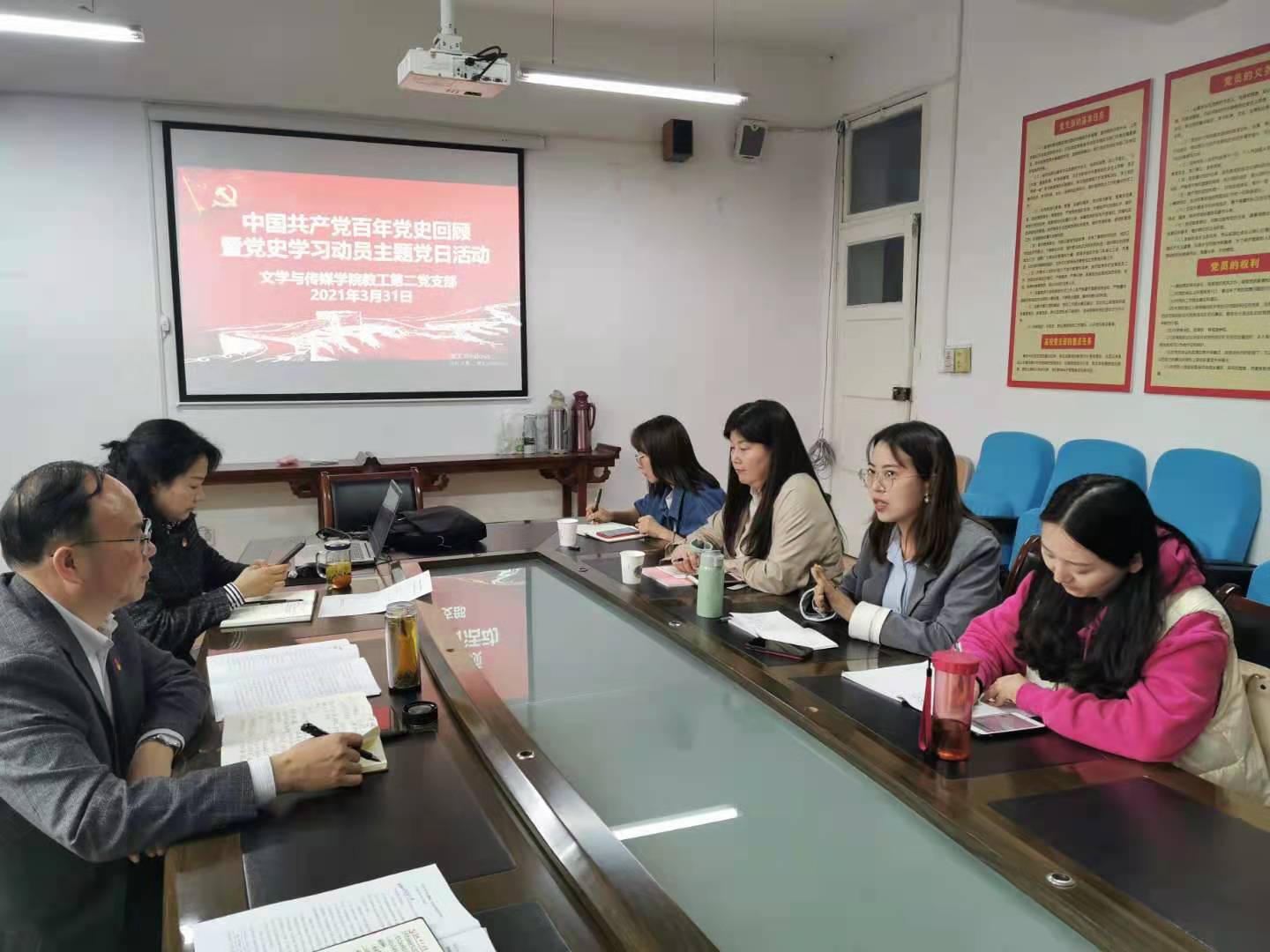为庆祝中国共产党成立100周年,积极响应习近平总书记在党史学习教育动员大会上的重要讲话精神,掀起“学史明理、学史增信、学史崇德、学史力行”热潮,3月31日下午,欧冠联赛官网教工第二党支部开展了中国共产党百年党史回顾暨党史学习动员主题党日活动。学校党委副书记杨行玉作为普通党员全程参与会议,会议由教工第二党支部书记谭诗民主持。