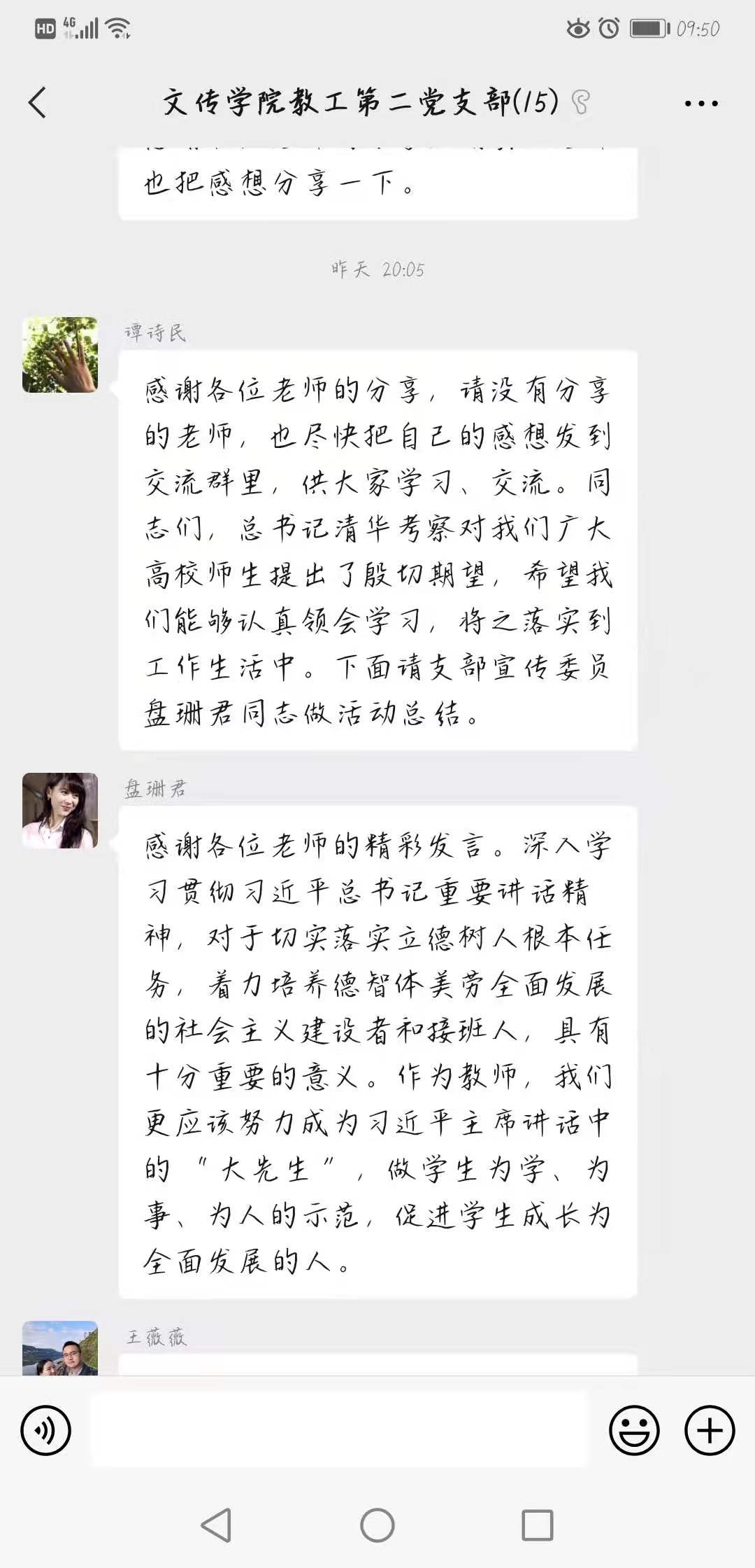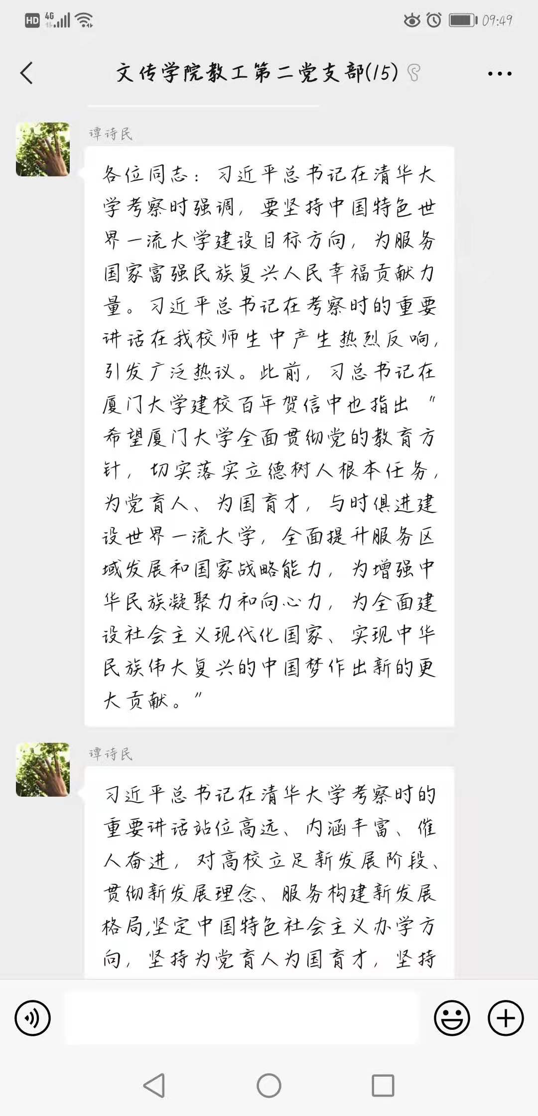 4月29日,欧冠联赛官网教工二支部依托支部微信平台开展了“深入学习习近平总书记清华考察重要讲话,牢固树立高校‘立德树人’根本任务”主题党日活动。活动由教工二支部书记谭诗民主持,支部全体党员共同学习并参与讨论。
