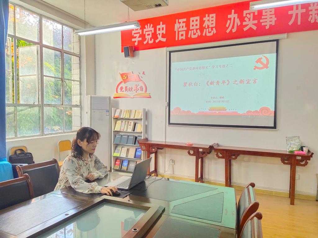 7月15日,欧冠联赛官网教工第二党支部在2307会议室开展了“中国共产党新闻思想史学习”读书活动。活动由支部书记谭诗民主持,支部全体党员参加了读书活动。本次读书活动主讲人为支部组织委员崔瑜,阅读篇目为瞿秋白《<新青年>之新宣言》。