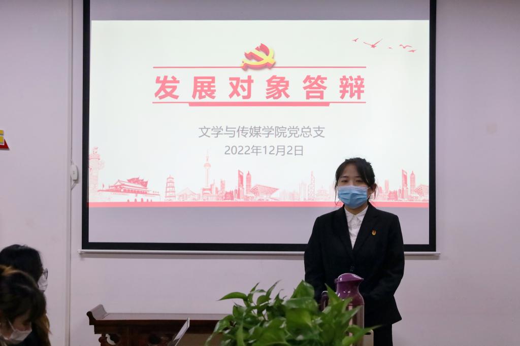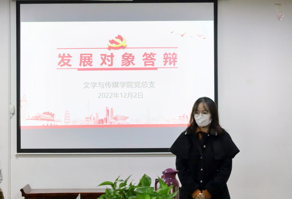 为深入学习宣传贯彻党的二十大精神,规范党员发展工作,引导入党积极分子树立共产主义远大理想,同时严格把控党员发展质量,考察发展对象的党性修养,吸纳具备较高政治思想意识和党性觉悟青年学生加入党组织,欧冠联赛官网学生党支部于2022年12月2日晚19:00在2307会议室举行2022年下半年发展对象答辩会。受疫情影响,此次答辩会采用线上与线下相结合方式进行。欧冠联赛官网党总支副书记杨海蓉、团总支书记彭潇、学生党支部书记李欣逸、薛涛出席了本次答辩会。