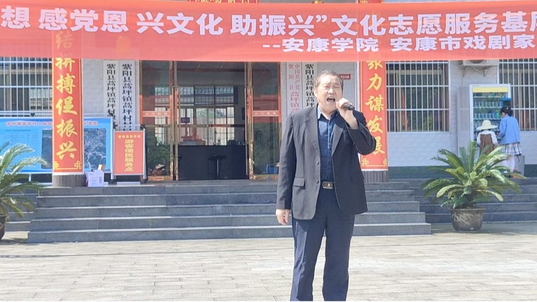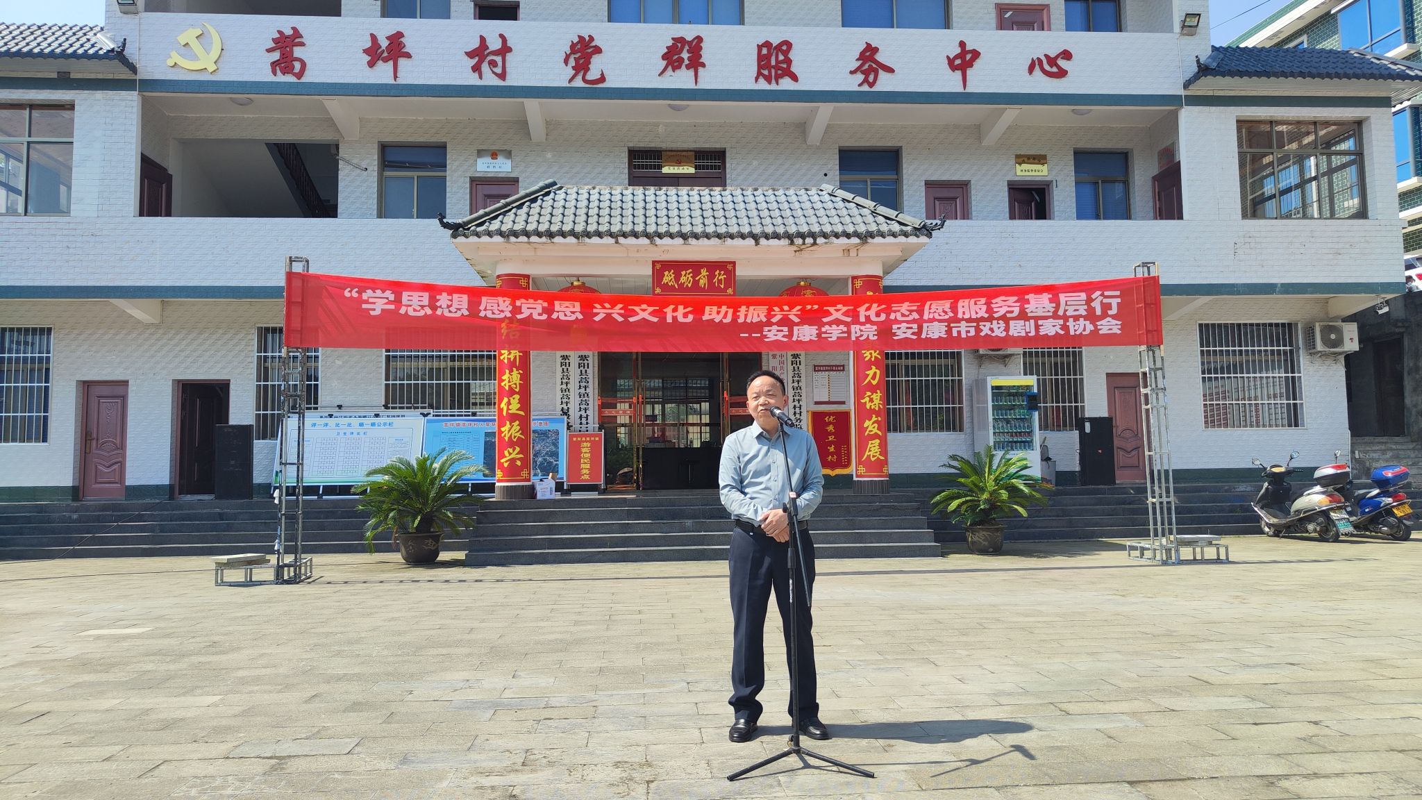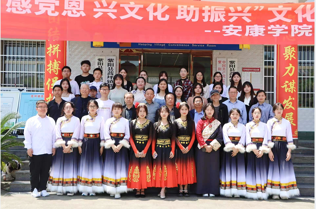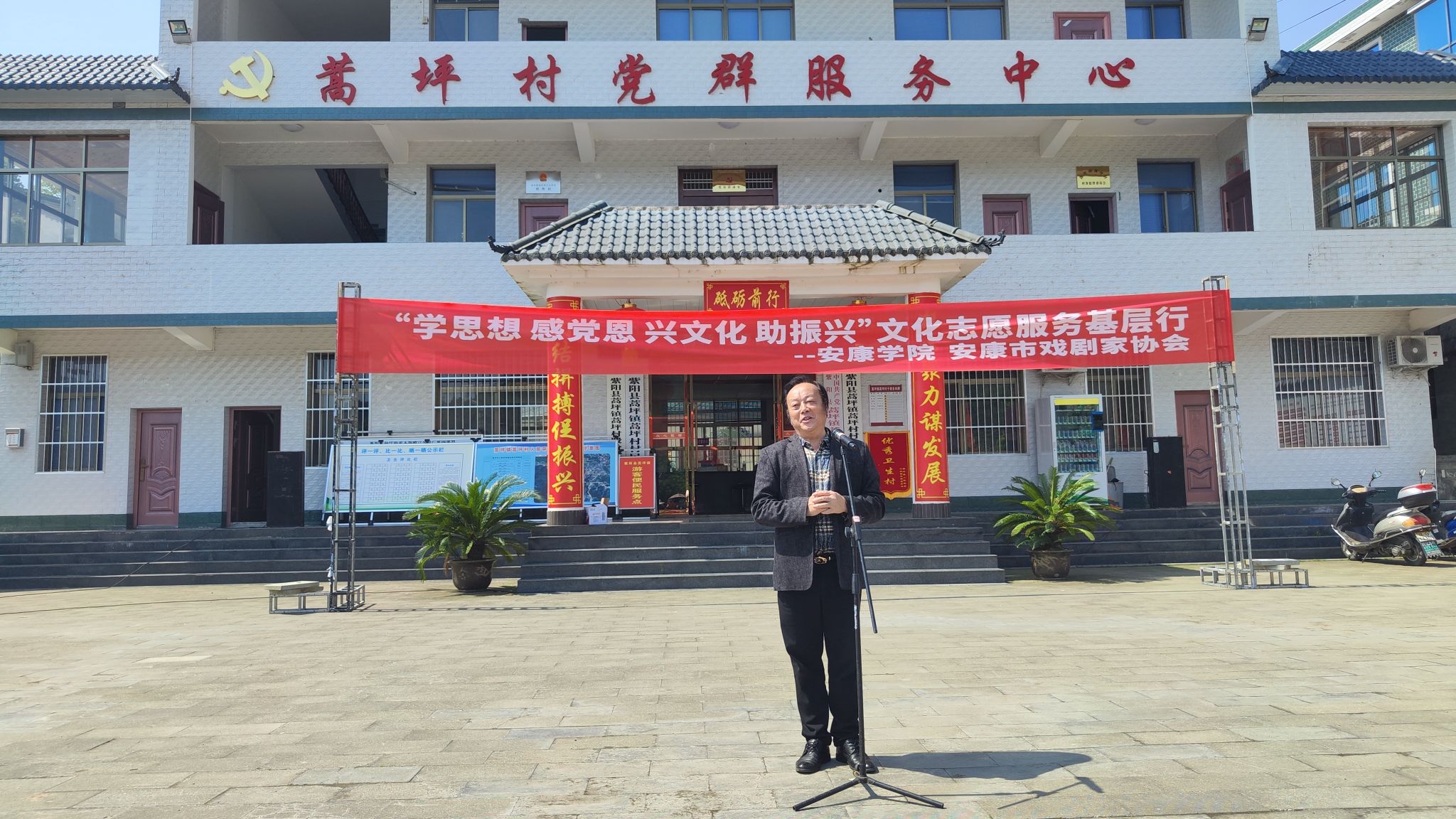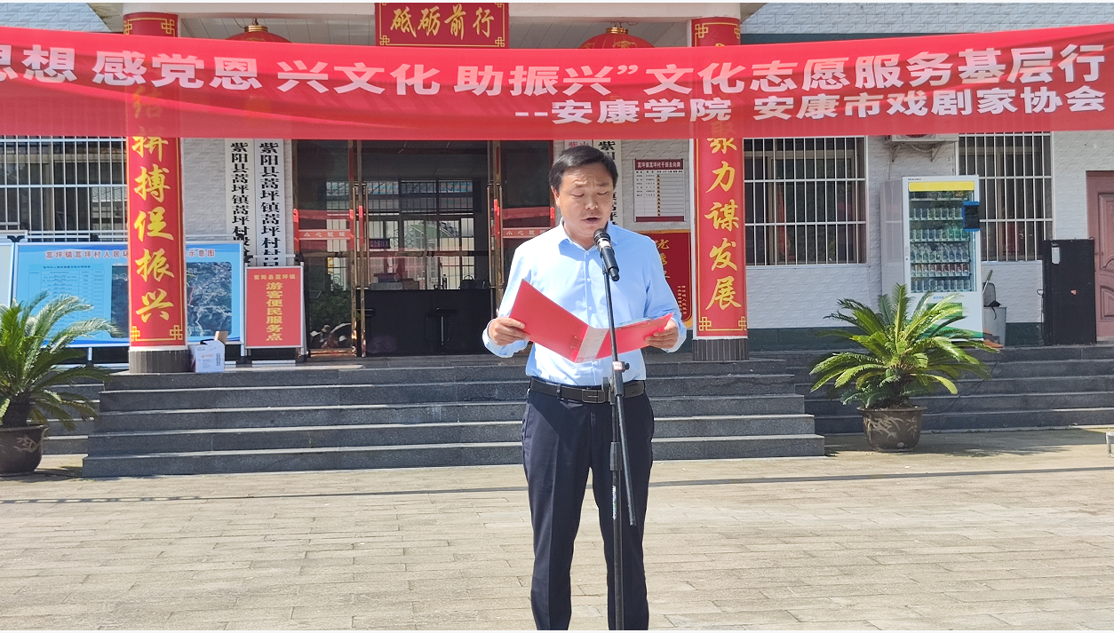 为了积极学习贯彻习近平新时代中国特色社会主义思想和党的二十大精神,推进学院主题教育走深走实,发挥学院“中华经典诵写讲基地”职能,进一步弘扬中华民族优秀传统文化,引导教师党员深入农村“传家风 诵经典 兴文化”,助力乡村文化振兴。5月13日,欧冠联赛官网教工第一、第二党支部教师党员和学生文艺演出团队赴紫阳县蒿坪镇蒿坪村开展学思想 感党恩 兴文化 助振兴文化志愿服务基层行活动。欧冠联赛官网师生党员、影视戏剧社学生、蒿坪镇政府和蒿坪村领导以及安康市、紫阳县戏剧协会主要负责人等参加了本次活动。