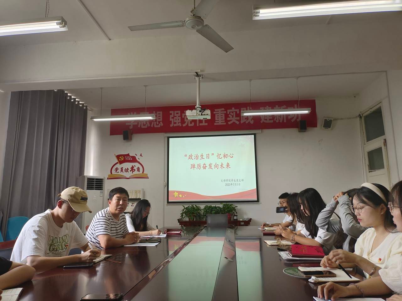 为了庆祝中国共产党成立102周年,激励广大党员充分发挥先锋模范作用,增强党组织的凝聚力,2023年7月1日上午9:00,欧冠联赛官网学生第一、第二党支部联合开展“‘政治生日’忆初心,踔厉奋发向未来”主题党日活动。活动由第二党支部书记薛涛主持,学生第一、第二党支部全体党员同志参会。