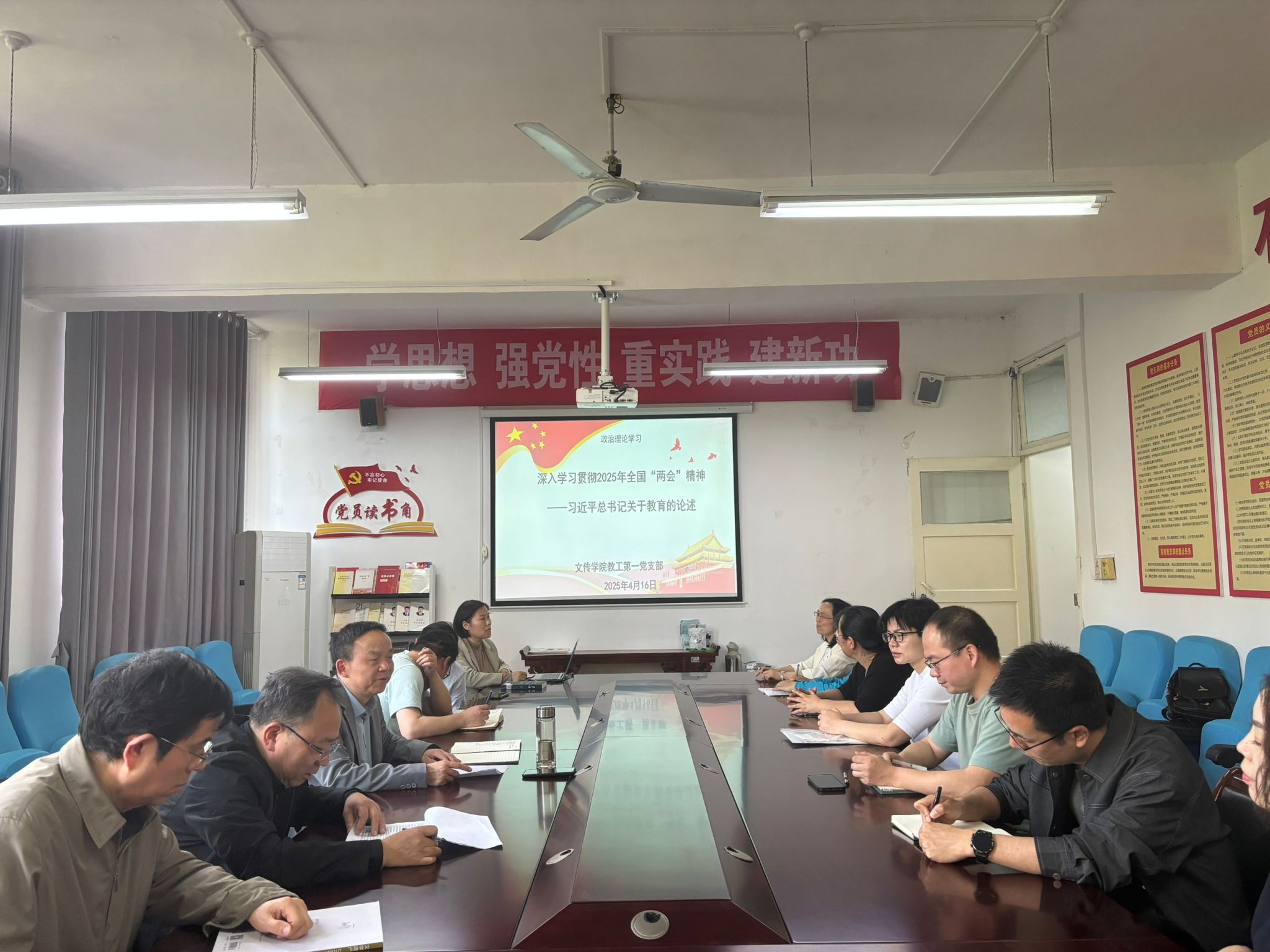 为深入学习贯彻全国“两会”精神,进一步提升党员的政治素养和责任意识,4月16日下午,欧冠联赛官网教工第一党支部组织开展了以“深入学习贯彻2025年全国‘两会’精神——习近平总书记关于教育的论述”为主题的党日活动,活动由支部书记韩文霞主持,支部全体党员参加。此次活动采取集中学习、视频观看、交流研讨等多种方式,引导党员深入领会全国“两会”精神,把握国家发展方向,激发党员同志的工作动力和热情,提升党员教师的思想觉悟,强化学院党建工作。