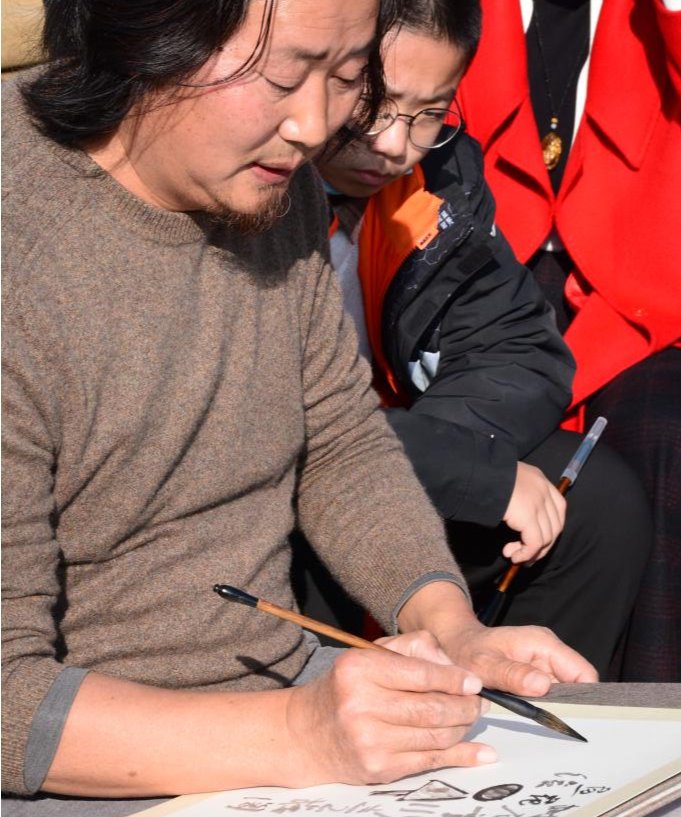 到达目的地后,学院特邀中国美术协会会员、陕西省中国画协会理事王关棣老师为大家讲授中国画赏析与创作,带领教师感受丹青之美。王老师结合中国画历史发展、内容分类、风格特点以及绘画笔法等,一边讲解一边示范,引导教师对中国水墨画有了更深的认知。随后学院老师们纷纷拿起画笔,点润墨香,在宣纸上勾、点、皴、擦,脑海中回首着诗词佳作,与眼前的山水美景进行着跨时空的链接,诗情画意跃然纸上,在王关棣老师的指导下,绘就了属于自己的第一幅丹青水墨作品。