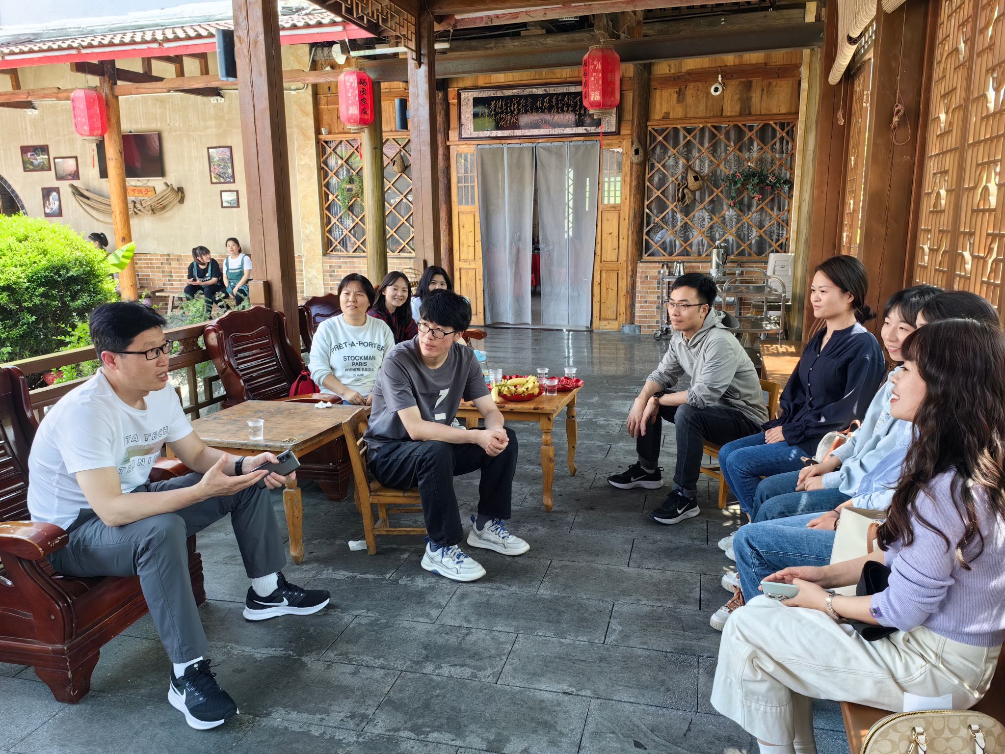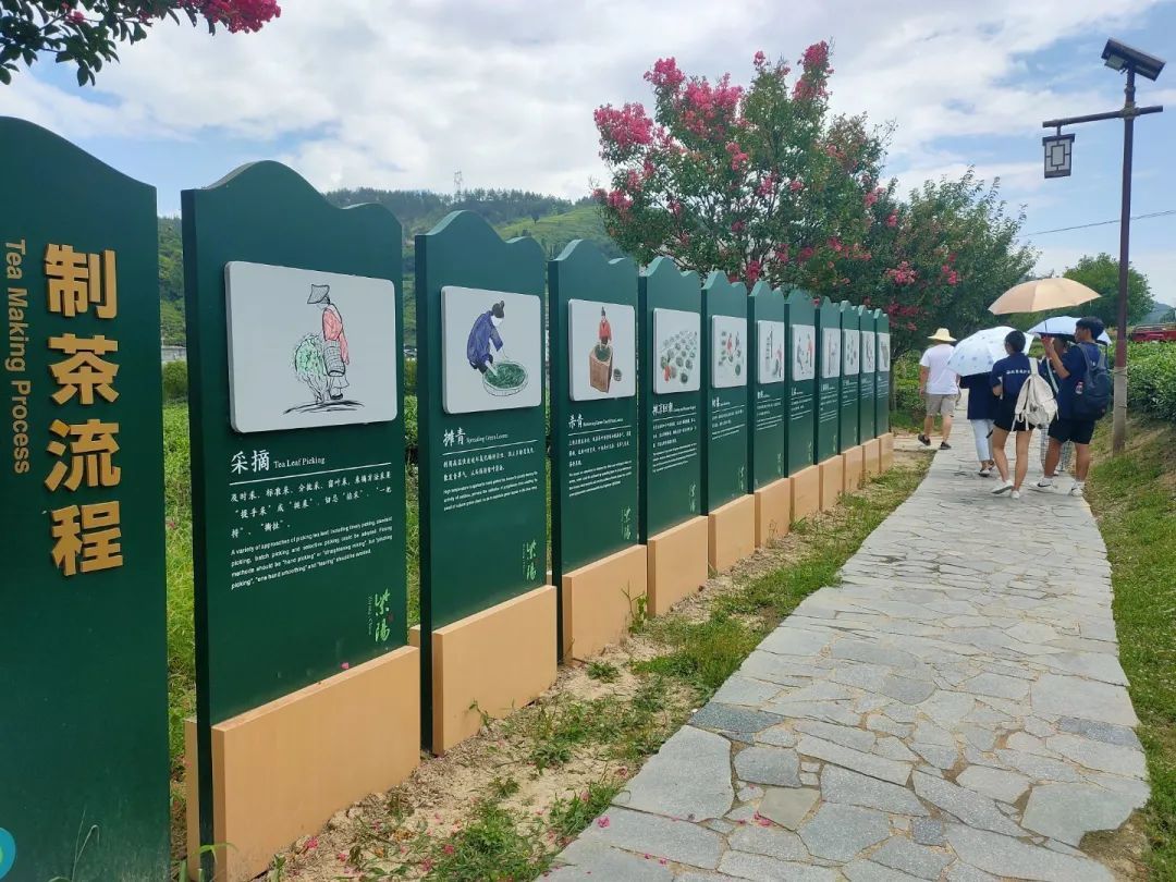 演出结束后,教职工们前往蒿坪镇茶园进行了参观,在参观的过程中,教职工们了解了紫阳茶的历史和制茶流程,还认识到该村在实现人力与技术相结合的基础上,不仅带动了茶叶产量与品质的提升,同时也积极发展茶园观光旅游业,创建特色农家乐和喊壶等亮眼的项目等,深切感受到村民收入增加的喜悦以及茶产业的发展给该村带来的变化。