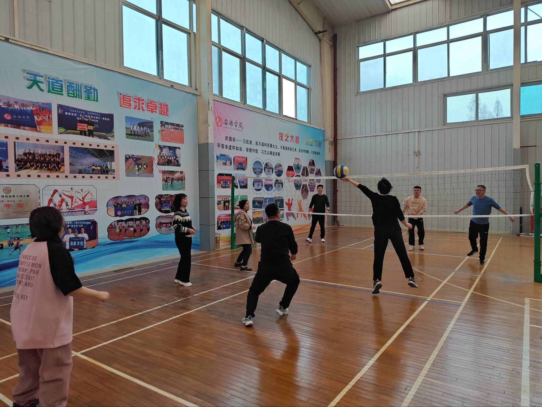 活动以趣味运动为主线,分别在学校体育馆和职工之家健身房进行了气排球比赛与趣味健身活动。活动结束后,学院党总支书记芦伟代表工会为现场女教师献花,赞扬她们在教学、科研工作中的重要作用,并致以节日祝福。