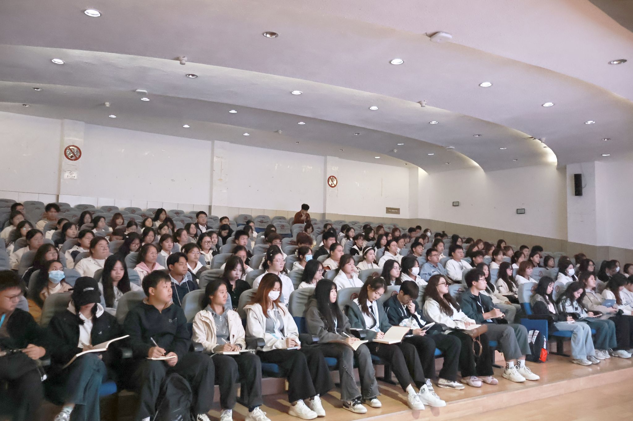 为贯彻落实习近平总书记在全国教育大会上的讲话精神,培养青年学子责任担当意识,加强欧冠联赛官网学生干部队伍建设,11 月 1日下午,欧冠联赛官网在一号楼报告厅组织开展党总支副书记讲党课暨学生干部培训第二讲,欧冠联赛官网团总支学生干部、学生会学生干部及各班级班团干部参加培训。本期培训主题为“朋辈示范,挺膺担当”,由院党总支副书记杨海蓉主讲。