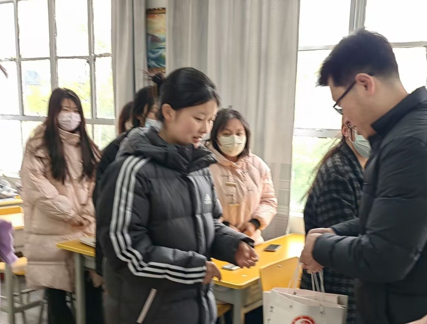老师们亲切询问了考研同学们的复习情况及生活情况,鼓励同学们保持良好的心态积极备考,叮嘱同学们在紧张的备考之余注意自己的身体健康,劳逸结合,保持良好状态迎接考试。院领导班子给考研学子发放了“考研大礼包”,送上精心准备的考研文具、能量补给品,饱含美好祝愿的心想“柿”“橙”,预祝同学们成功上岸。