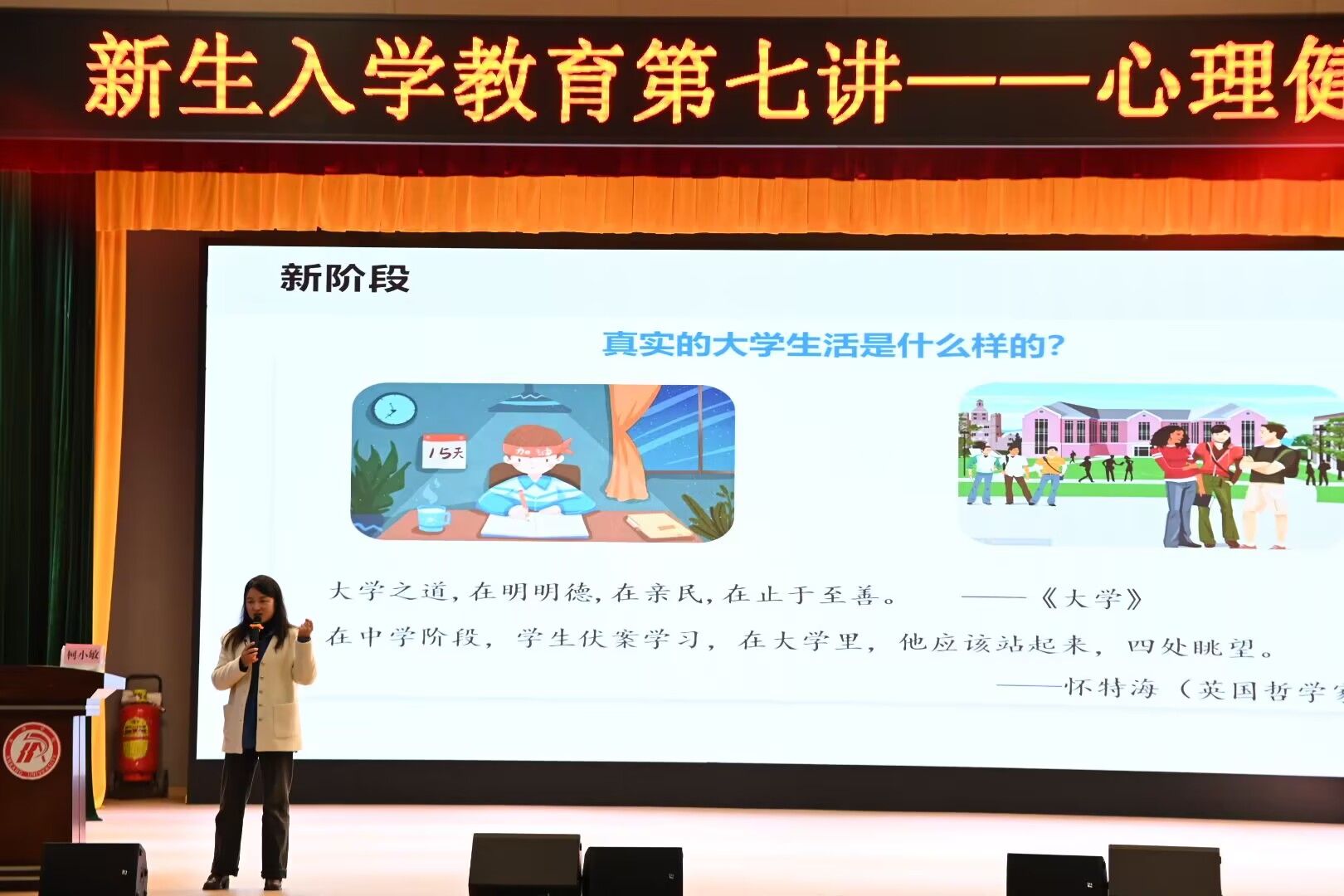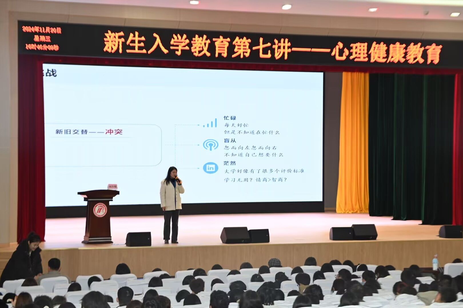 为进一步提升大学生心理健康素质,帮助同学们更好的应对挫折与挑战,11月20日下午,欧冠联赛官网在江南校区大礼堂开展了大学生心理健康教育专题讲座,特邀大学生心理健康教育中心主任柯小敏主讲。2024级全体新生参加活动,讲座由辅导员刘言军主持。