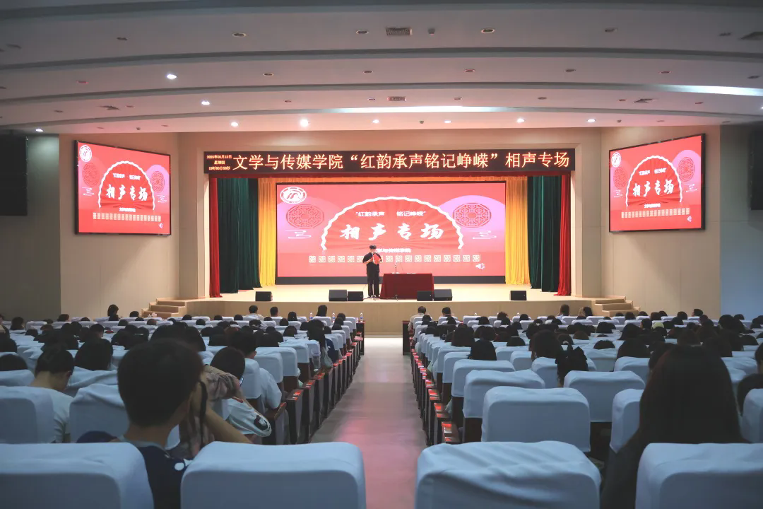 为传承红色基因,切实弘扬中华优秀传统文化,5月15日晚,欧冠联赛官网于大礼堂举办了“红韵承声 铭记峥嵘”相声专场活动,特邀安康市曲艺家协会主席汪涛、校团委书记周云出席,欧冠官网党总支书记任森龙,全体辅导员及23、24级全体学生参加活动,活动由汉语言文学2024级1班李炫烨主持。