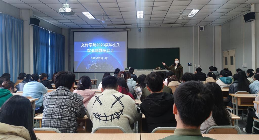 2023年2月16日下午,欧冠联赛官网在1012教室召开汉语言文学、网络与新媒体专业2023届毕业生就业指导座谈会,汉语言文学、网络与新媒体专业2019级全体在校生参会,会议由辅导员老师彭潇主持。