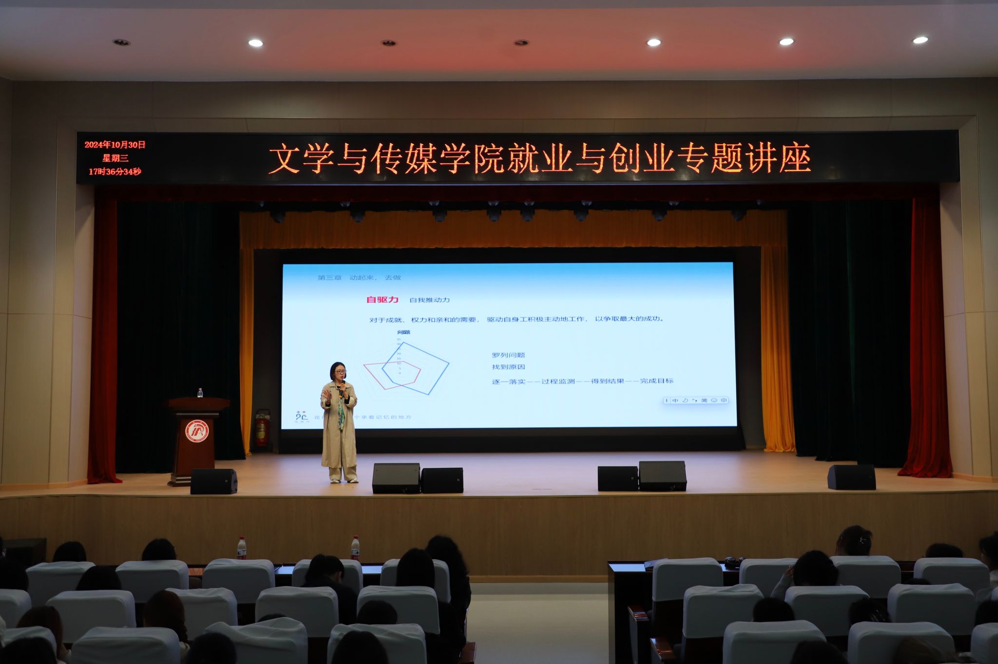 为贯彻落实国务院办公厅关于深化高等学校创新创业教育的实施意见,创新就业创业指导课程教学方式,10月30日下午,欧冠联赛官网特邀陕西花栖玥民宿管理有限公司创始人郭媛媛在江南校区大礼堂为欧冠官网学生开展就业与创业专题讲座,学院党总支副书记杨海蓉、学工办(就业办)主任薛涛及2022级、2023级全体学生参会,本次活动由薛涛主持。