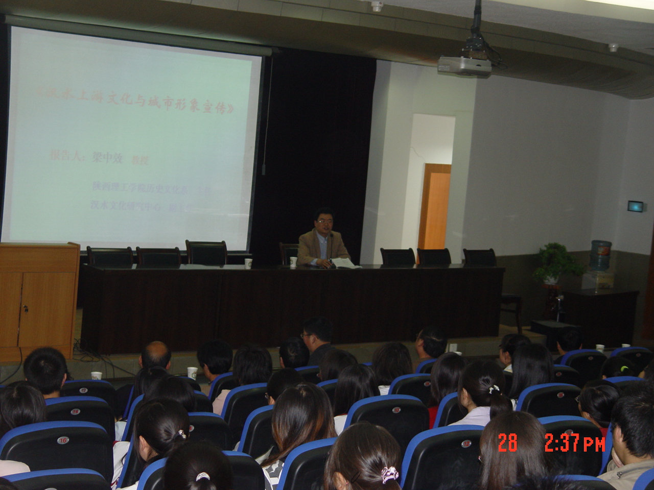 3月28日下午2:30分,我系在一号教学楼学术报告厅举行了一场题为“汉水上游文化研究与城市形象定位宣传”的学术报告会,由应邀来我校的陕西理工学院历史文化系主任梁中效教授主讲。梁教授在报告中就城市形象的内涵以及对城市形象未来发展前景的认识和评价做了比较科学的阐释。并以历史文化名城汉中为例,从其历史文脉中凝炼出栈道文化、两汉三国文化、红色抗战文化、地域民俗文化等城市文化四大特色,进而将汉中城市形象定位为:中华汉城、西部绿心、天汉之源、秦巴天府。梁教授结合实际从理论的高度概括城市文化与城市形象设计方式与特征的研究方法,给与会听众留下深刻印象。