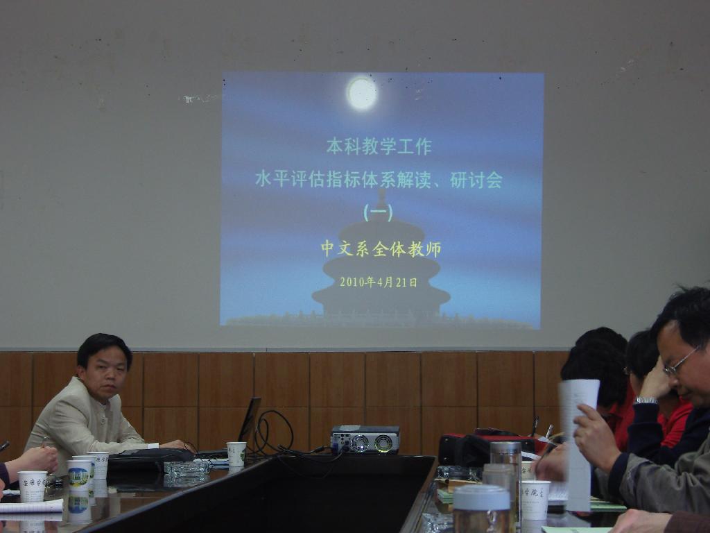导航痕迹 首页 > 新闻通知 > 学院新闻 > 正文 学院新闻 通知公告 中文系组织全系教师解读本科教学工作水平评估指标体系 发布人: 发布日期:2010年04月22日 阅读次数: 为了使全系教师更好地了解本科教学水平评估指标体系的内涵,重视本科教学评估工作,营造本科教学评估工作氛围,中文系组织全系教师于2010年4月21日下午在学院大会议室对本科教学工作水平评估指标体系进行了解读、研讨。通过本次解读、研讨会,中文系教师对本科教学水平评估的宗旨、依据、原则、目的等有了进一步的了解,明白了教育部高等学校本科教学水平评估工作的阶段性工作内容和欧冠官网评建工作的流程,理解了部分本科教学工作水平评估指标体系的内涵。 本次学习活动是中文系学习本科教学工作水平评估指标体系及其相关文件的系列活动之一,以后还将继续组织全系教师对本科教学工作水平评估指标体系及其相关文件进行深入学习。本次学习活动由中文系主任戴承元主持进行。