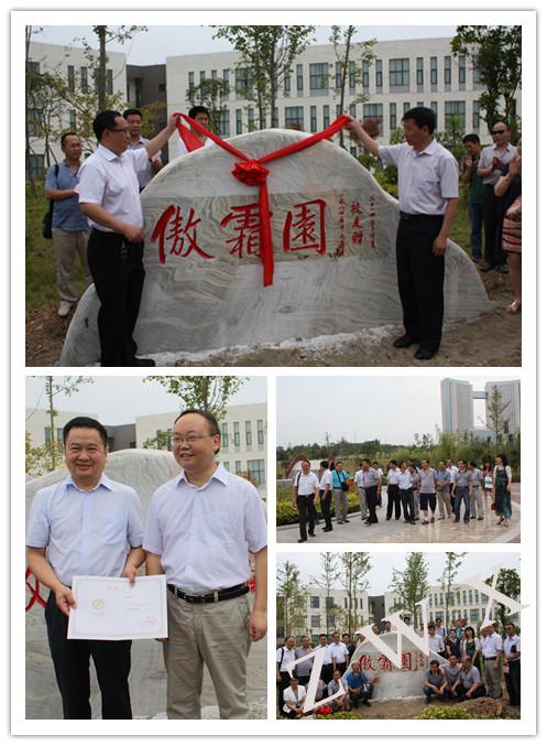 19日上午,中文82级校友在新校区举行了“傲霜园”纪念石捐赠仪式,仪式由合作发展处处长单福东主持。学校副校长向纪明出席仪式,并在讲话中代表学校对校友们回报母校的善举给予了充分肯定和谢意,对校友们的发展进步表达了良好的祝愿和殷切期待。下午校友们又走进课堂聆听了李钦业老师的一节课,重新做了一名学生。接着师生座谈会在第一会议室举行。党委副书记胡鸿晓,副校长向纪明、中文系主任戴承元、中文系书记李岩、老教师代表李钦业、余海章、韩再宁、王先知、姚维荣及校友办负责人胡卫卫与82级校友30余人共同参加了座谈会。