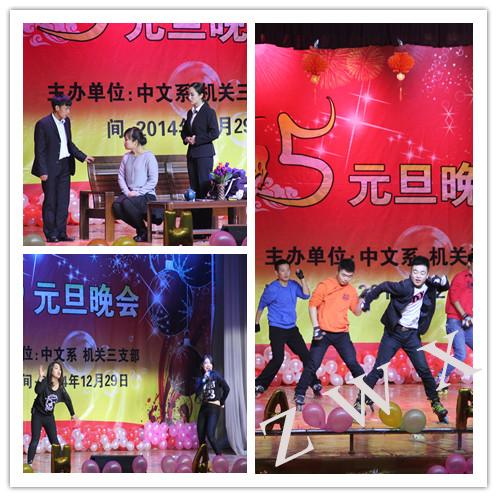 12月29日晚,中文系与机关三党支部在江南校区联合举办元旦晚会。校学工部部长郑树青,中文系主任戴承元、党总支书记李岩,校保卫处副处长张文华、王开忠,校团委副书记肖红香,中文系副主任梁卫华、杨运庚及中文系800余名师生一起观看了演出。