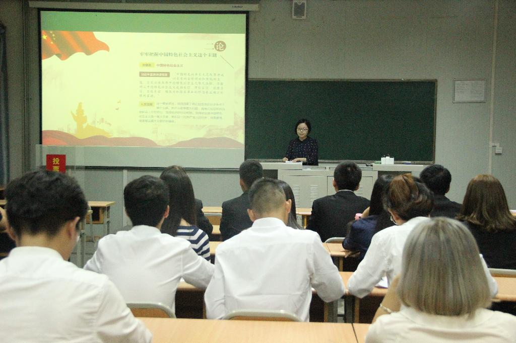 会议分为两个阶段,第一阶段专题学习会由团总支书记沈菲主讲。关于习近平总书记7·26重要讲话、8·15回信的相关内容,欧冠联赛官网团总支在暑期通过爱中文微信平台进行了专题推送,组织学生进行了线上学习;本次通过专题学习会线下重温的方式,再度带领学生深入学习相关内容。沈菲从八个学习要点切入,阐述了习近平总书记7·26重要讲话精神;通过阅读回信,关键词解读的方式带领大家学习了习近平总书记8·15回信和9·23回信的重要内容。沈菲希望全体学生干部深入学习领会讲话和回信精神,培养创新意识与团队精神,切实增强政治自觉,在广大学生当中发挥模范带头作用。