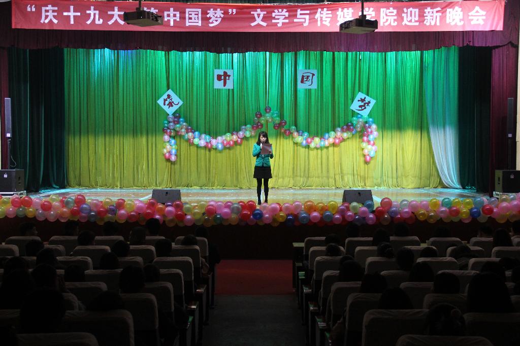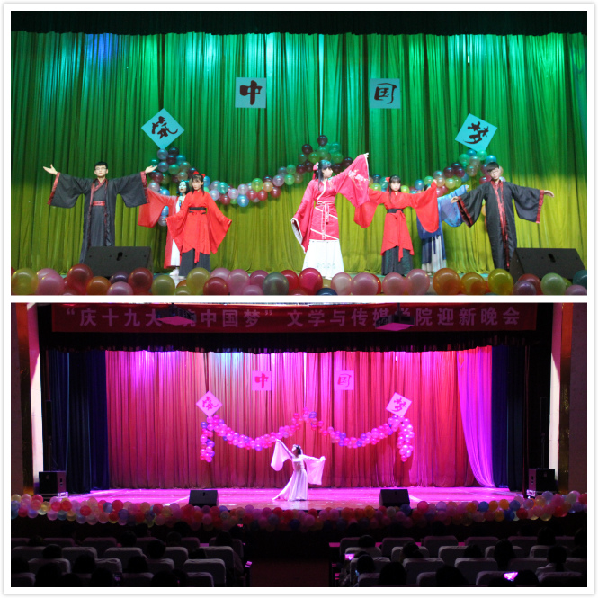 为庆祝党的十九大胜利召开,欢迎2017级学生,欧冠联赛官网于2017年10月28日晚在江南校区大礼堂隆重举行了“庆十九大 筑中国梦”迎新晚会。欧冠联赛官网师生欢聚一堂,共同欣赏了这场视听盛宴。欧冠联赛官网党总支书记于咏梅、副院长杨运庚、工会主席周龙田、陕南民间文化研究中心办公室主任杨明贵、全体辅导员及2017级全体新生、2015级、2016级部分学生观看了本场晚会。