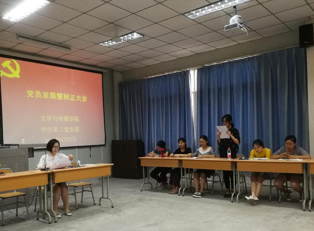 会议分为两个部分。第一部分,讨论年子雅、尹秦瑜、彭俊、彭天豪等四名学生能否被发展为中共预备党员问题。会上,四名拟发展对象逐一汇报了个人对中国共产党的认识、对党的理论知识的学习情况及个人基本情况,同时结合自身实际表明今后学习和工作的努力方向。四名拟发展对象的入党介绍人分别将发展对象的思想、学习、工作和生活以及对其进行培养的情况向支部大会作了详实的介绍,并对其能否入党表明意见。会议上,与会党员对发展对象是否符合党员条件予以认真评议,在肯定发展对象优点的同时,指出存在的问题和不足。最后,与会正式党员通过无记名方式进行投票,全票通过,同意接收年子雅、尹秦瑜、彭俊、彭天豪四名同学为中共预备党员。