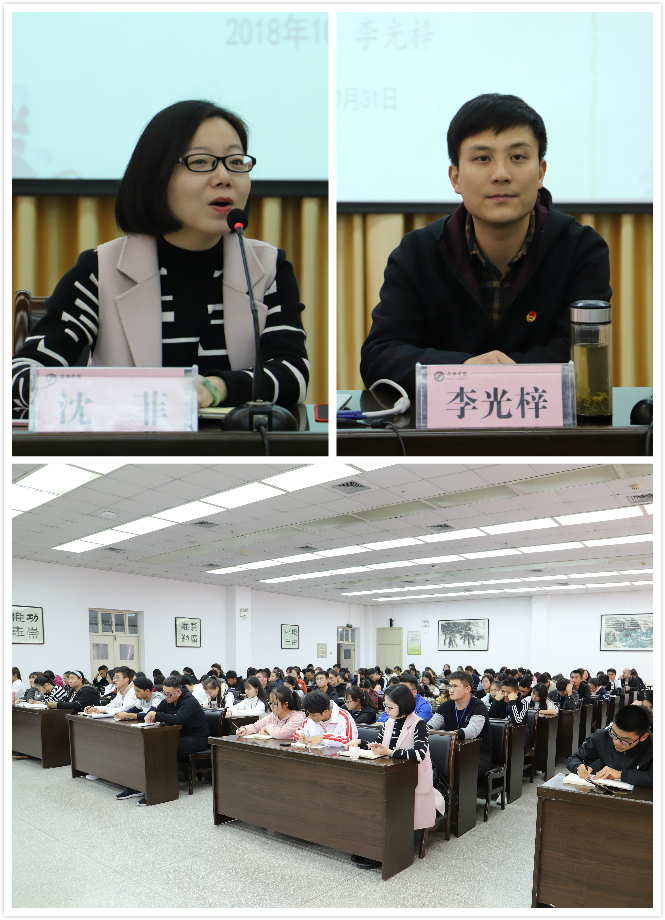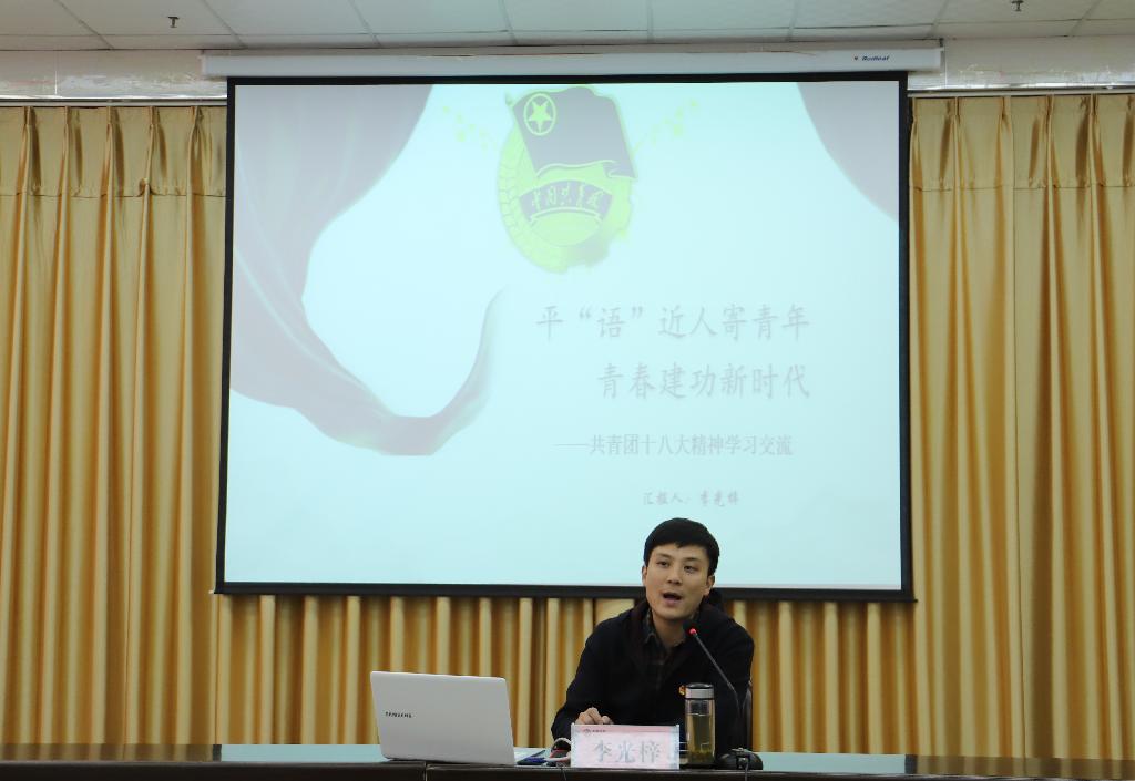 李光梓围绕报告主题,分别从共青团十八大情况与报告解读、习近平总书记对青年的青春寄语、新时代青年的责任与担当三个方面与在座的同学们进行交流和分享。