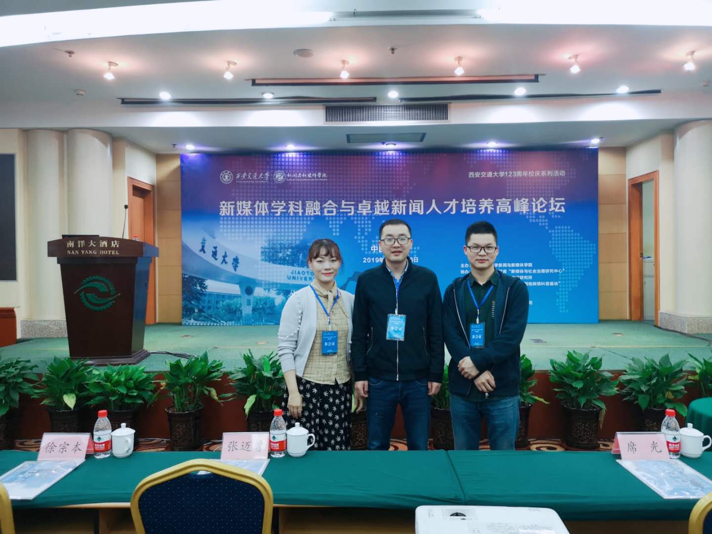 4月6日,由西安交通大学新闻与新媒体学院主办的“新媒体学科融合与卓越新闻人才培养”高峰论坛在西安交大举行,来自国内外学界、业界的30余位知名专家学者和来自国内兄弟高校的200余位学者学子云集西安交通大学,交流新媒体跨学科融合、新媒体专业发展与学科建设、智媒时代新闻传播人才培养、融媒体人才培养跨界合作以及新媒体教育教学中的人才定位与课程体系建设等问题。欧冠官网胡少山、崔瑜、张建涛三位教师应邀参加会议。