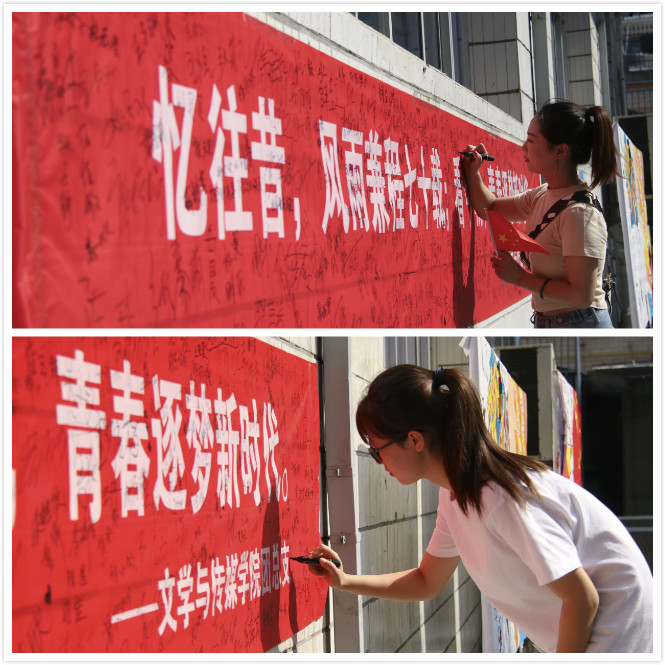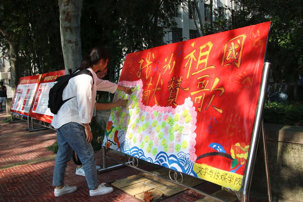 同日中午,欧冠官网团总支在江南校区林荫道旁组织了“我为祖国母亲庆生”签字仪式,大家在“忆往昔,风雨兼程七十载;看今朝,青春逐梦新时代”的横幅上签上了自己的名字,一笔一划,皆是对祖国归属感和自豪感的表达。