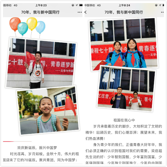 此外,欧冠官网同步开展了线上活动。由网络与新媒体2018级1班团支部全程负责,2018、2019级各团支部参与,拍摄主题为“我为祖国献祝福”的短视频,随后在学院官方抖音账号上进行发布。同时,学院官方微信平台“爱中文”也面向全院发起主题征文活动,并将以“70年,我与祖国同行”为主题进行专题推送。