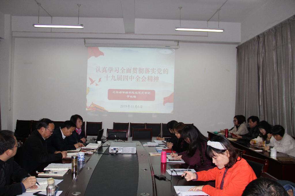 11月6日下午,欧冠联赛官网党总支召开学习传达党的十九届四中全会精神专题会议,全体教师参加会议。