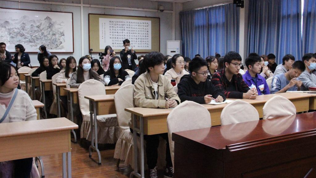 为丰富学生第二课堂,培养学生审美能力,提升师范生技能促进全面发展,欧冠联赛官网于2020年11月18日下午邀请中国美术协会会员、陕西省中国画协会理事王关棣为全院学子作《发现色彩之美》讲座。院党总支副书记杨海蓉、学工办主任薛涛、团总支书记彭潇、辅导员艾全霞以及教师代表郑继猛到场和同学们一起聆听讲座。讲座由薛涛主持。