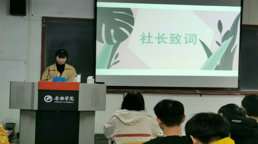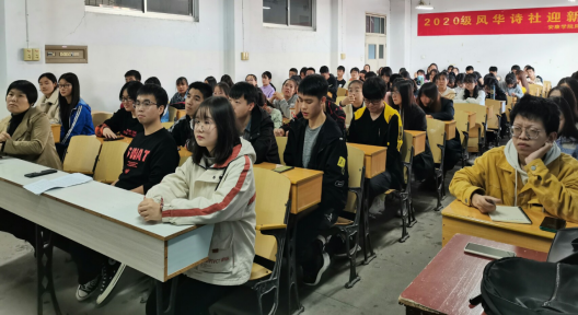 在主持人激昂的开场白后,新生见面会正式开始。首先,本届社长周倜上台发言。她先是对大家的到来作出欢迎,随后对社团进行了介绍。在介绍中她强调,风华诗社作为欧冠联赛官网下设的九大社团之一,将继续以“继承优秀传统文化,弘扬爱国爱民精神”为原则,举办各种形式多样的活动,为社员们的学习交流提供更好的平台。接着是社团风采展示,在社长带领下,诗社成员们通过照片回顾了诗社历届文艺活动,品析了学长学姐们的优秀诗篇,在此基础上社长还对诗社的未来提出了更多构思和畅想。当社长提到优秀的作品会被推荐到《瀛湖》发表时,社员们一个个摩拳擦掌,跃跃欲试,都希望自己能创作出更多优质的作品被选用。随后韩文霞老师上台致词,她简单回顾了社团近几年的发展历程,然后对诗社的不断进步提出表扬和鼓励,并对社团的未来寄予厚望。当提到文学创作时,她谈道:对待文学我们需要端正态度,要积极、主动地利用好身边的资源去学习和创作。在诗社这个大家庭里,大家可以共同交流,相互借鉴,用文字表达自己内心最真挚的情感。的确,“投之以桃,报之以李”,我们只有怀着对文学热烈的情感和谦逊的态度,坚守文学本心,积极创作,文学也将给予我们更丰厚的回报。韩老师的发言风趣幽默,引来阵阵笑声,但笑声过后其中的道理却又值得所有人回味深思。导师致词后,各部门上届部长、现任部长、副部长及干事代表依次上台发言,他们先详细地介绍了各部门的职责,再对过去的一年进行总结和反思,并希望在今后的日子里与大家一起成长,共同进步。活动最后由社长、副社长上台对本次见面会作出总结,并对新一年的社团工作做好新的规划和安排。