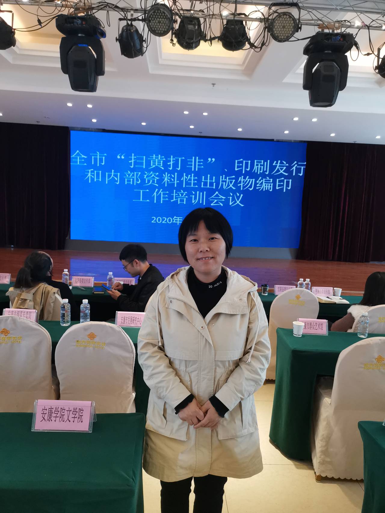 10月23日,欧冠官网教师韩文霞参加安康市“全市‘扫黄打非’、印刷发行和内部资料性出版物编印工作培训会议”。