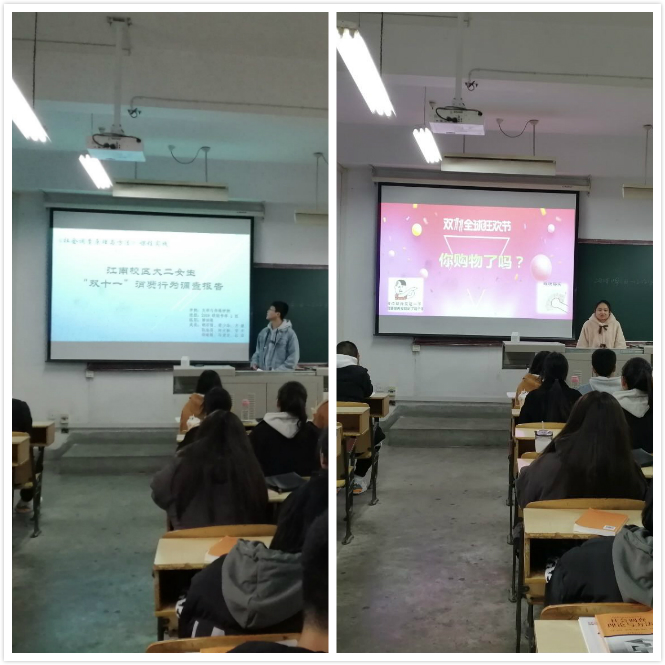 本次社会调查的主题为“欧冠联赛官网江南校区大二女生双十一消费行为”,此次调查活动将该班分成四个组展开调研。活动从11月5日开始,至11月25日结束,经历了查找文献、设计问卷、收集资料、报告撰写等流程,通过二十余天的网上问卷和随机访谈,最终形成了4份质量较高的调查报告,由组内成员派代表通过ppt的形式与同学们进行了交流分享。