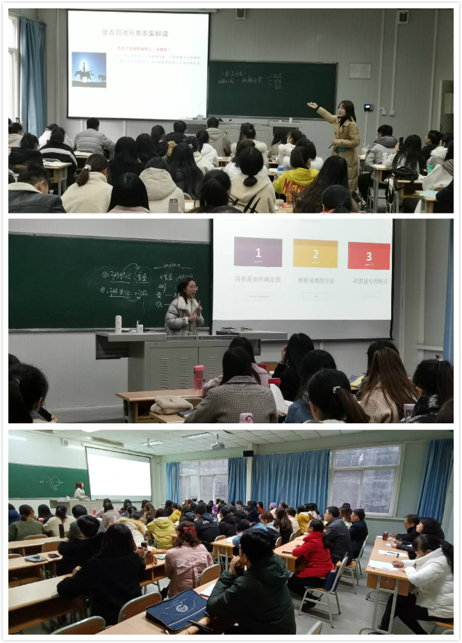 在11月30日邸玲老师的外国文学课和12月4日盘珊君老师的语言学概论课上,观摩教师们看到了主讲教师对教材的钻研、对学生主体的关注、对课堂创新的思考,看到了她们授课时条理清晰的思路、准确生动的语言、大方自然的教态,也看到了学生在师生互动、生生互动过程中的积极性与创造性。