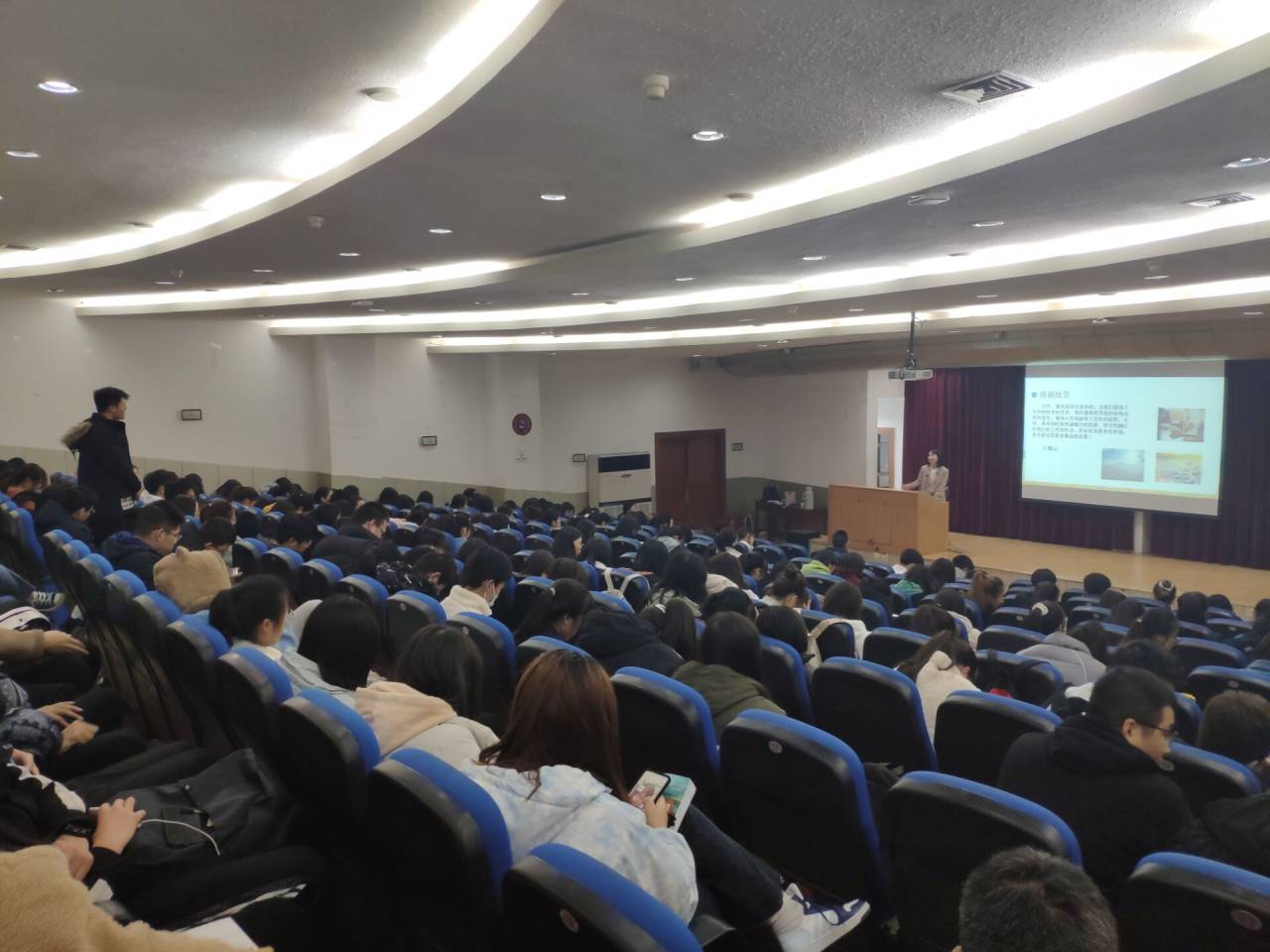 王晓云老师讲授的主题是“写作小说的几个关键词”,主要从小说的五个基本要素:语言、故事、结构、人物和精神等展开讲授,并通过列举大量国内外小说作品详细阐述自己的观点。她通过小说与诗歌、散文的比较来谈小说语言,认为“小说语言是基本要素,是文字工作者必不可少的基本功”,并鼓励同学们平时多加训练。在讲述小说故事时,更是引经据典,说明故事在小说写作地位中的重要性,“小说之所以引人入胜,故事的作用功不可没”。“小说结构问题,是常常被人忽视的问题”,王晓云老师以发展的眼光谈了古今小说在结构上的变化,引起了同学们的高度重视。“小说精神,是一个小说超越其他普通小说最重要的方面”,她通过讲述《桂河大桥》《肖申克的救赎》等电影情节,将这一观点由浅入深地传授给同学们。王晓云老师观点鲜明,概括全面,引人深思;语言幽默诙谐,充满智慧和情趣。同学们注意力集中,收获颇多。