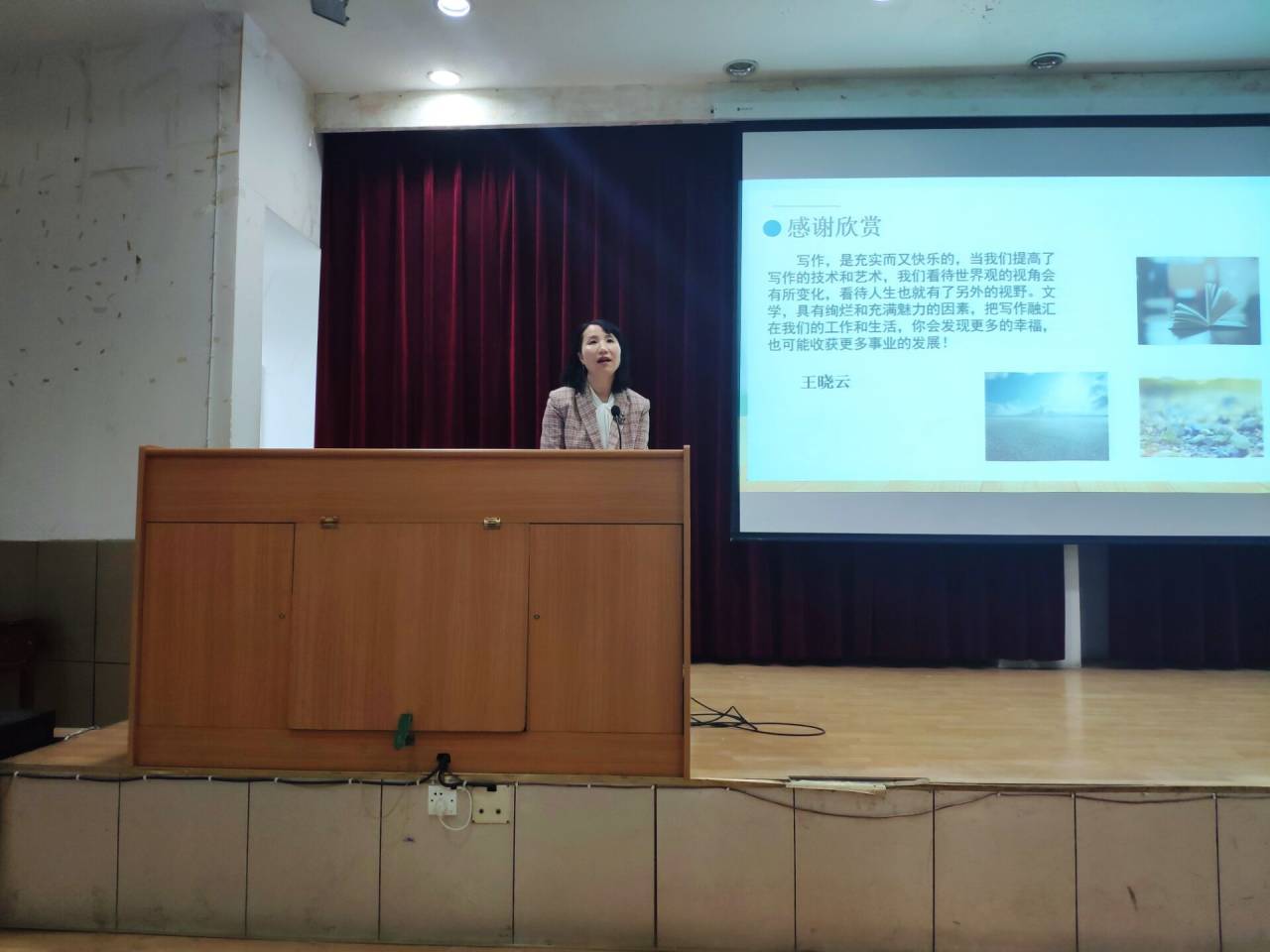 2020年12月8日,晚七点整,著名作家王晓云应欧冠联赛官网邀请,在江南1号教学楼报告厅与基础写作任课教师韩文霞一起,为汉语言文学专业2020级学生讲授“小说创作”一课。同学们对王晓云老师的到来表示热烈的欢迎。汉语言文学系主任李婷到场听课。