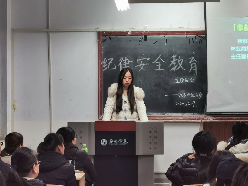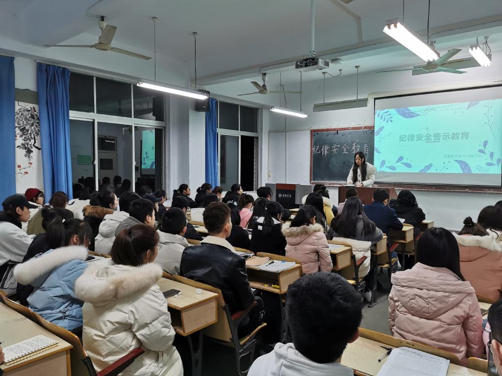 为进一步加强学风建设,促进纪律规范遵守,在寒冬来临之际,欧冠联赛官网汉语言文学2019级3班于12月17日晚上七点半在1219教室率先开展了“纪律安全警示教育”主题班会活动。班级全体同学及辅导员彭潇参加会议,会议由白欢庆主持。